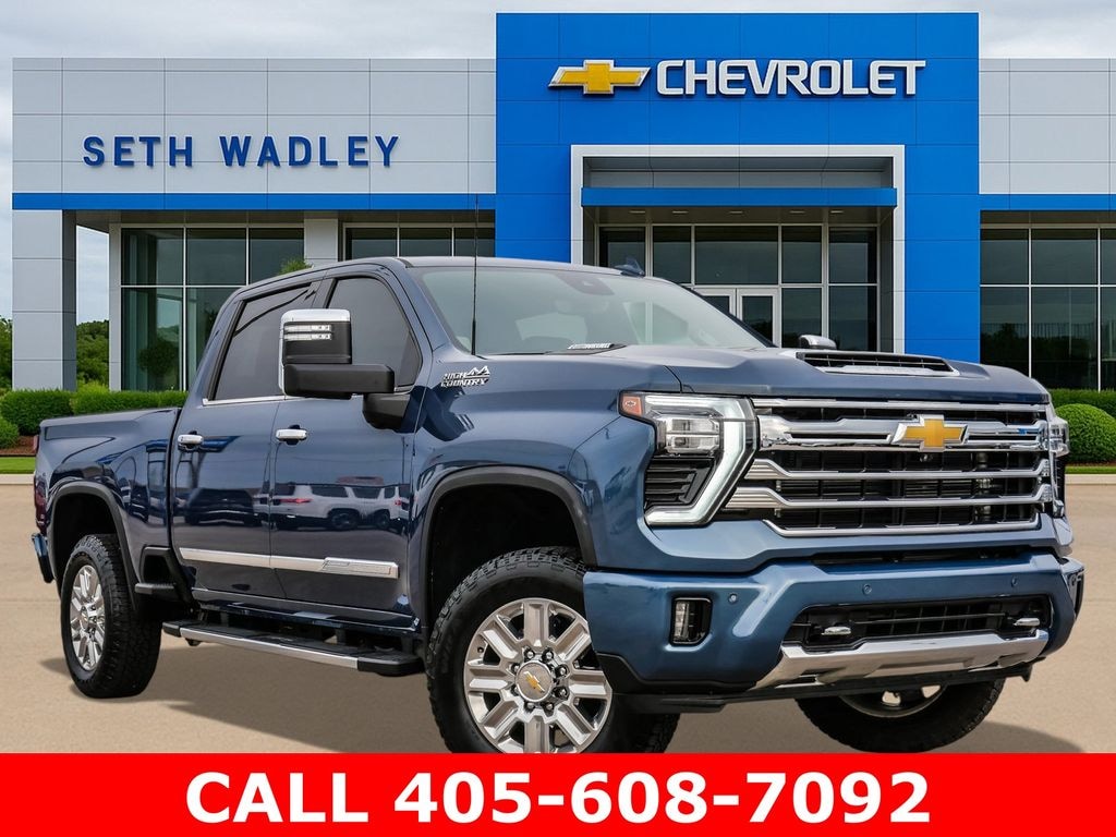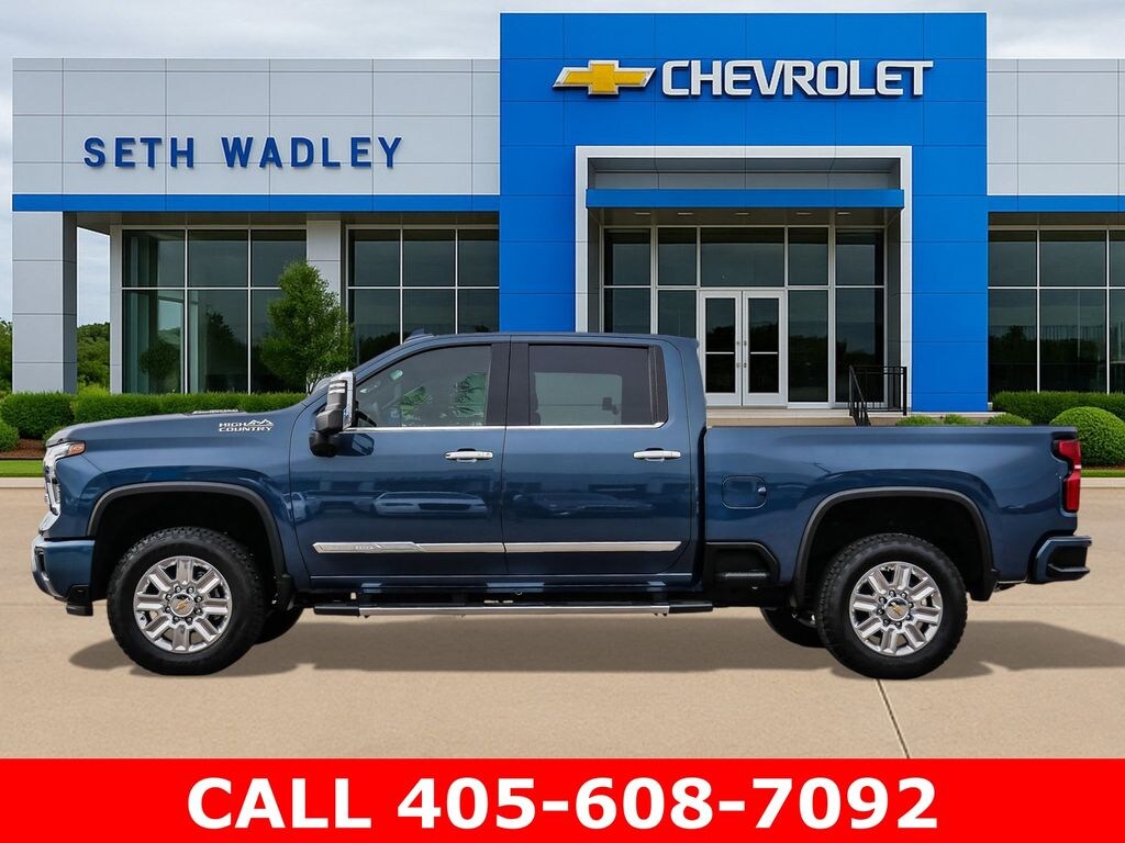 Certified. 2025 Lakeshore Blue Metallic Chevrolet Silverado 2500HD High Country 4WD 10-Speed Automatic Duramax 6.6L V8 Turbodiesel This Chevrolet Silverado 2500HD has many features and is well equipped including, Lifetime Engine Guarantee, Lifetime Oil Changes, Accident Free Carfax, Bluetooth, Carfax One-Owner, Heated Mirrors, Heated / Cooled Seats, Keyless Entry, Leather, Rear Backup Camera, Remote Start, **SIRIUS/XM SATELLITE RADIO**, Tow Package, All Wheel Drive / 4x4, 10-Way Power Driver Seat Adjuster with Lumbar, 10-Way Power Passenger Seat Adjuster with Lumbar, 120-Volt Bed Mounted Power Outlet, 120-Volt Interior Power Outlet, 15" Diagonal Multicolor Head-Up Display, 170 Amp Alternator, 220 Amp Alternator, 3.73 Rear Axle Ratio, 4-Wheel Disc Brakes, 6" Rectangular Chromed Tubular Assist Steps, 7 Speakers, 720 Cold-Cranking Amps Heavy-Duty Battery, ABS brakes, Air Conditioning, AM/FM radio: SiriusXM with 360L, Apple CarPlay/Android Auto, Auto High-beam Headlights, Auto-dimming door mirrors, Auto-Dimming Inside Rear-View Mirror, Auto-dimming Rear-View mirror, Automatic temperature control, Bed View Camera with Two Trailer Camera Provisions, Black Chevytec Spray-on Bedliner, Bluetooth® For Phone, Bodyside moldings, BOSE Premium 7-Speaker Sound System, Brake assist, Bumpers: body-color, Chevrolet Connected Access Capable, Chrome Door Handles, Chrome Mirror Caps, Color-Keyed Carpeting Floor Covering, Compass, Deep-Tinted Glass, Delay-off headlights, Deleted Mobile Service Plus, Driver door bin, Driver Memory, Driver vanity mirror, Dual front impact airbags, Dual front side impact airbags, Durabed Pickup Bed, Electric Rear-Window Defogger, Electronic Stability Control, Emergency communication system: OnStar, Engine Block Heater, Exhaust Brake, Floor-Mounted Center Console, Front anti-roll bar, Front Bucket Seats, Front Carpeted Floor Mats, Front Center Armrest, Front Chrome Recovery Hooks, Front dual zone A/C, Front fog lights, Front LED Fog Lamps, Front Rain-Sensing Wipers, Front reading lights, Front wheel independent suspension, Fully automatic headlights, Garage door transmitter, Genuine wood console insert, Genuine wood dashboard insert, Genuine wood door panel insert, Heated 2nd Row Outboard Seats, Heated door mirrors, Heated Driver and Front Outboard Passenger Seating, Heated front seats, Heated rear seats, Heated Steering Wheel, Heated steering wheel, Hill Descent Control, Hitch Guidance with Hitch View, Illuminated entry, in-Vehicle Trailering App System, Keyless Open and Start, LED Cargo Area Lighting, Low tire pressure warning, Manual Tilt and Telescoping Steering Column, Memory seat, Occupant sensing airbag, Off-Road Suspension, OnStar Services Capable, Outside temperature display, Overhead airbag, Overhead console, Panic alarm, Passenger door bin, Passenger vanity mirror, Perforated Leather Seat Trim, Polished Exhaust Tip, Power Door Locks, Power door mirrors, Power driver seat, Power Front Windows with Driver Express Up/Down, Power Front Windows with Passenger Express Up/Down, Power passenger seat, Power Rear Windows with Express Down, Power Sliding Rear Window with Defogger, Power steering, Power Up/Down Tailgate Function with Power Lock and Release, Power windows, Preferred Equipment Group 3LZ, Premium audio system: Chevrolet Infotainment 3 Premium, Push Button Start, Radio: Chevrolet Infotainment 3 Premium System, Rain sensing wipers, Rear Camera Mirror, Rear Carpeted Floor Mats, Rear Cross Traffic Alert, Rear reading lights, Rear seat center armrest, Rear step bumper, Rear Wheelhouse Liners, Rear window defroster, Remote keyless entry, Remote Vehicle Starter System, Security system, SiriusXM with 360L Trial Subscription, Speed control, Speed-sensing steering, Split folding rear seat, Standard Tailgate, Steering Wheel Audio Controls, Steering wheel mounted audio controls, Suspension Package, Tachometer, Technology Package, Telescoping steering wheel, Tilt steering wheel, Traction control, Trailer Camera Provis