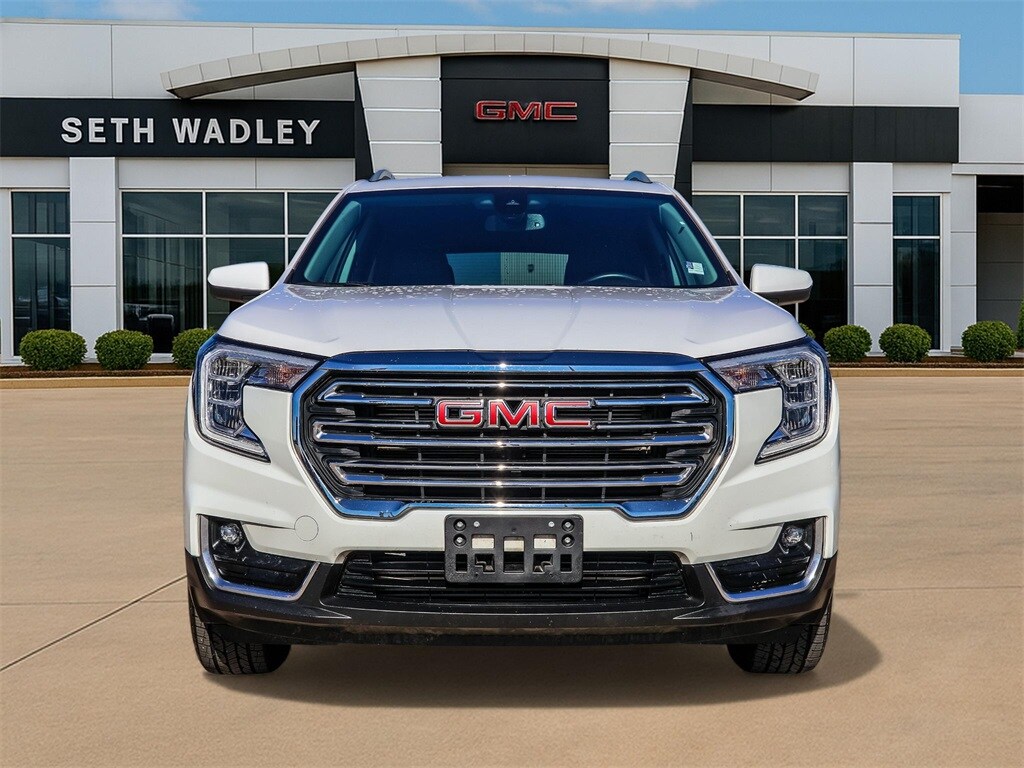 Certified. 2023 Summit White GMC Terrain SLT AWD 9-Speed Automatic 1.5L DOHC This GMC Terrain has many features and is well equipped including, Lifetime Engine Guarantee, Lifetime Oil Changes, Accident Free Carfax, Bluetooth, Keyless Entry, Leather, Rear Backup Camera, Remote Start, **SIRIUS/XM SATELLITE RADIO**, All Wheel Drive / 4x4, USB, Bluetooth Hands Free, 2 USB Data Ports, 2 USB Data Ports w/SD Card Reader, 3.47 Axle Ratio, 4-Wheel Disc Brakes, 6 Speakers, 6-Speaker Audio System Feature, 6-Way Power Front Passenger Seat, 8-Way Power Driver Seat Adjuster, ABS brakes, Air Conditioning, Alloy wheels, AM/FM radio: SiriusXM, Auto High-beam Headlights, Auto-dimming Rear-View mirror, Automatic temperature control, Bluetooth® For Phone, Brake assist, Bumpers: body-color, Compass, Delay-off headlights, Driver & Front Passenger Heated Seats, Driver door bin, Driver vanity mirror, Dual front impact airbags, Dual front side impact airbags, Electronic Stability Control, Emergency communication system: OnStar and GMC connected services capable, Four wheel independent suspension, Front anti-roll bar, Front Bucket Seats, Front Center Armrest, Front dual zone A/C, Front fog lights, Front Passenger 2-Way Power Lumbar, Front reading lights, Fully automatic headlights, Garage door transmitter, Heated door mirrors, Heated front seats, Heated steering wheel, Illuminated entry, Lane Departure Warning System, License Plate Front Mounting Package, Low tire pressure warning, Memory seat, Occupant sensing airbag, Outside temperature display, Overhead airbag, Overhead console, Panic alarm, Passenger door bin, Passenger vanity mirror, Perforated Leather-Appointed Seat Trim, Power door mirrors, Power Driver Lumbar Control, Power driver seat, Power Liftgate, Power passenger seat, Power steering, Power windows, Preferred Equipment Group 4SA, Radio data system, Radio: GMC Infotainment Audio System w/8" Display, Rear anti-roll bar, Rear seat center armrest, Rear window defroster, Rear window wiper, Remote keyless entry, Roof rack: rails only, Security system, SiriusXM Radio, Speed control, Speed-sensing steering, Split folding rear seat, Spoiler, Steering wheel mounted audio controls, Tachometer, Telescoping steering wheel, Tilt steering wheel, Traction control, Trip computer, Turn signal indicator mirrors, Variably intermittent wipers, Wheels: 18" x 7" Silver Painted Aluminum, Wireless Apple CarPlay/Wireless Android Auto.