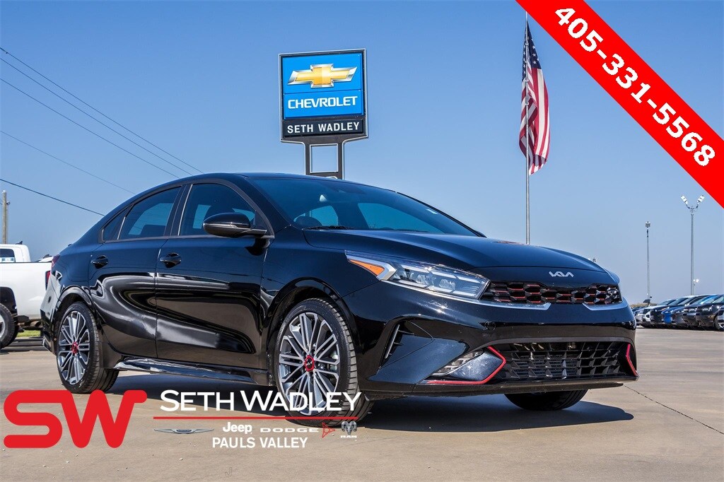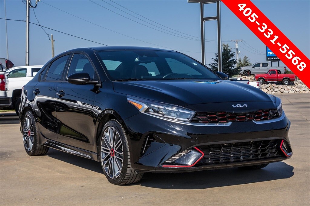 Certified. 2023 Aurora Black Pearl Kia Forte GT FWD 6-Speed Manual 1.6L I4 Turbo This Kia Forte has many features and is well equipped including, Lifetime Engine Guarantee, Lifetime Oil Changes, 18" x 7.5J Alloy Wheels, 4-Wheel Disc Brakes, 8 Speakers, ABS brakes, Air Conditioning, AM/FM radio: SiriusXM, Apple CarPlay & Android Auto, Auto High-beam Headlights, Automatic temperature control, Brake assist, Bumpers: body-color, Delay-off headlights, Driver door bin, Driver vanity mirror, Dual front impact airbags, Dual front side impact airbags, Electronic Stability Control, Emergency communication system, Exterior Parking Camera Rear, Four wheel independent suspension, Front anti-roll bar, Front Bucket Seats, Front Center Armrest, Front dual zone A/C, Front fog lights, Front reading lights, Fully automatic headlights, harman/kardon® Speakers, Heated door mirrors, Heated Front Bucket Seats, Heated front seats, Illuminated entry, Leather Shift Knob, Leather steering wheel, Low tire pressure warning, Navigation System, Occupant sensing airbag, Outside temperature display, Overhead airbag, Overhead console, Panic alarm, Passenger door bin, Passenger vanity mirror, Power door mirrors, Power moonroof, Power steering, Power windows, Radio data system, Radio: harman kardon Premium Audio, Rear anti-roll bar, Rear reading lights, Rear seat center armrest, Rear window defroster, Remote keyless entry, Security system, Speed control, Split folding rear seat, Spoiler, Sport steering wheel, Steering wheel mounted audio controls, SynTex Seat Trim, Tachometer, Telescoping steering wheel, Tilt steering wheel, Traction control, Trip computer, Turn signal indicator mirrors, Variably intermittent wipers.