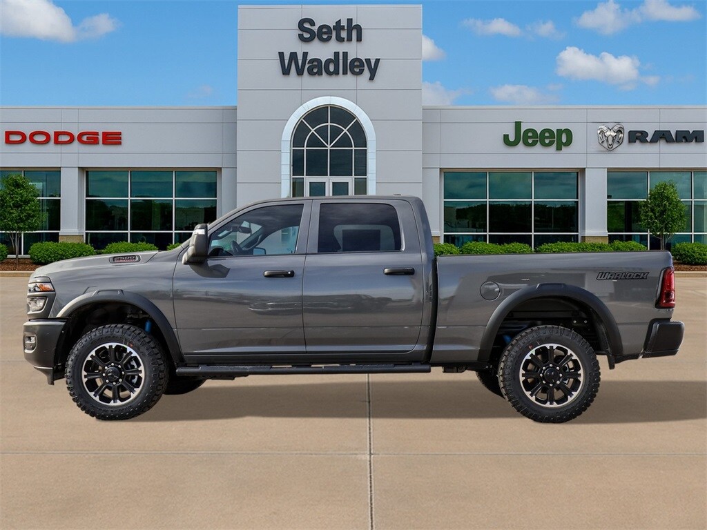 This Ram 2500 has many features and is well equipped including, Lifetime Engine Guarantee, Lifetime Oil Changes, 115-Volt Auxiliary Front Power Outlet, 12" Touchscreen Display, 2 Way Rear Headrest Seat, 3.73 Axle Ratio, 4 Way Front Headrests, 4-Wheel Disc Brakes, 40/20/40 Split Bench Seat, 400W Inverter, 4G LTE Wi-Fi Hot Spot, 5th Wheel/Gooseneck Towing Prep Group, 6 Speakers, ABS brakes, Air Conditioning, Air Conditioning ATC with Dual Zone Control, Alexa Built-in, AM/FM radio: SiriusXM, Anti-Spin Differential Rear Axle, Apple CarPlay, Apple CarPlay/Android Auto, Auto Power-Folding Mirrors, Auto-Dimming Rear-View Mirror, Black Exterior Mirrors, Black Wheel Center Hub, Black Wheel Flares, Brake assist, Carpet Floor Covering, Cloth 40/20/40 Bench Seat, Compass, Connected Travel and Traffic Services, Connectivity - US/Canada, Delay-off headlights, Disassociated Touchscreen Display, Driver door bin, Dual front impact airbags, Dual front side impact airbags, Electronic Stability Control, Emergency Vehicle Alert System (EVAS), Exterior 115V AC Outlet, Exterior Mirrors Courtesy Lamps, Exterior Mirrors with Heating Element, Exterior Mirrors with Supplemental Signals, For Details, Visit DriveUconnect.com, For More Info, Call 800-643-2112, Forward and Reverse Utility Lights, Front anti-roll bar, Front Armrest with Cupholders, Front Center Armrest w/Storage, Front fog lights, Front Performance Tuned Shock Absorbers, Front reading lights, Fully automatic headlights, Global Telematics Box Module, Google Android Auto, GPS Antenna Input, GPS Navigation, HD Radio, Hill Assist, Illuminated entry, Integrated Voice Command with Bluetooth, Low tire pressure warning, Manual Adjust 4-Way Driver Seat, Manual Adjust 4-Way Front Passenger Seat, Manual Folding Exterior Mirrors, Manual Telescoping Mirrors, Mirror Running Lights, Mopar Black Tubular Side Steps, MOPAR Front and Rear Rubber Floor Mats, Occupant sensing airbag, Off-Road Info Pages, Outside temperature display, Overhead airbag, Overhead console, Panic alarm, ParkView Rear Back-Up Camera, Passenger door bin, Passenger vanity mirror, Power Adjust Mirrors, Power Heated Folding Telescopic Mirrors, Power steering, Power Telescoping Mirrors, Power windows, Power-Adjustable Convex Aux Mirrors, Quick Order Package 2UB Warlock, Radio data system, Radio: Uconnect 5 Navigation with 12.0" Display, Radio: Uconnect 5 with 8.4" Display, Rear anti-roll bar, Rear Folding Seat, Rear Performance Tuned Shock Absorbers, Rear Power Sliding Window, Rear step bumper, Rear Wheelhouse Liners, Rear window defroster, Remote keyless entry, Remote USB Port - Charge Only, Selectable Tire Fill Alert, SiriusXM Radio Service, SiriusXM with 360L, Speed control, Storage Tray, Tachometer, Tilt steering wheel, Tinted Acoustic Windshield Glass, Traction control, Tradesman Level 1 Equipment Group, Trailer Tow Pages, Variably intermittent wipers, Voltmeter, Warlock Decal, Wheels: 17" x 7.5" Black Steel Styled, Wheels: 20" x 8.0" Black Diamond Cut Aluminum.