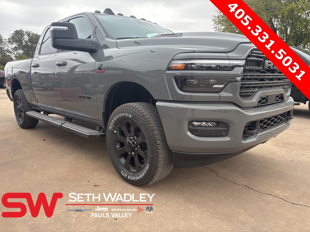 This Ram 2500 has many features and is well equipped including, Lifetime Engine Guarantee, Lifetime Oil Changes, #1 Seat Foam Cushion, 10 Speakers, 115V Auxiliary Rear Power Outlet, 2 Way Rear Headrest Seat, 2nd Row In Floor Storage Bins, 4 Way Front Headrests, 4-Wheel Disc Brakes, 4G LTE Wi-Fi Hot Spot, 5th Wheel/Gooseneck Towing Prep Group, ABS brakes, Active Lane Management System, Adaptive Steering System, Air Conditioning, Alexa Built-In, Alloy wheels, AM/FM radio: SiriusXM with 360L, Anti-Spin Differential Rear Axle, Apple CarPlay, Apple CarPlay/Android Auto, Auto Adjust In Reverse Exterior Mirrors, Auto Dim Exterior Mirror, Auto High Beam Headlamp Control, Auto Level Rear Air Suspension, Auto Power-Folding Mirrors, Auto-Dimming Exterior Passenger Mirror, Auto-dimming Rear-View mirror, Automatic temperature control, Black Exterior Mirrors, Black Exterior Truck Badging, Black Wheel Center Hub, Body Color Grille-Surround, Brake assist, Bucket Seats, Bumpers: body-color, Chrome Exterior Mirrors, Clearance Lamps, Compass, Connected Travel & Traffic Services, Connectivity - US/Canada, CTR Stop Lamp w/Cargo View Camera, Delay-off headlights, Disassociated Touchscreen Display, Driver door bin, Driver vanity mirror, Drowsy Driver Detection, Dual front impact airbags, Dual front side impact airbags, Dual Wireless Charging Pad, Electronic Stability Control, Emergency Vehicle Alert System (EVAS), Exterior Mirrors Courtesy Lamps, Exterior Mirrors w/Heating Element, Exterior Mirrors w/Memory, Exterior Mirrors w/Supplemental Signals, Foam Bottle Insert (Door Trim Panel), Folding Flat Load Floor Storage, For Details, Visit DriveUconnect.com, For More Info, Call 800-643-2112, Forward & Reverse Utility Lights, Front anti-roll bar, Front Center Armrest w/Storage, Front dual zone A/C, Front fog lights, Front reading lights, Front Seat Back Map Pockets, Full Length Upgraded Floor Console, Fully automatic headlights, Garage door transmitter, Global Telematics Box Module (TBM), Gloss Black Grille Billets/Accents, Google Android Auto, GPS Antenna Input, GPS Navigation, HD Radio, Heated door mirrors, Heated Front Seats, Heated front seats, Heated Second Row Seats, Heated Steering Wheel, Heated steering wheel, High Back Seats, Illuminated entry, Integrated Voice Command w/Bluetooth, Laramie Level 1 Plus Equipment Group, Leather Trim 40/20/40 Bench Seat, Leather Trimmed Bucket Seats, LED Bed Lighting, Low tire pressure warning, Mirror Running Lights, MOPAR Deployable Bed Step, MOPAR Spray In Bedliner, Navigation System, Night Edition, Occupant sensing airbag, Off-Road Info Pages, Outside temperature display, Overhead airbag, Overhead console, Painted Flat Wheel-to-Wheel Side Steps, Panic alarm, ParkView Rear Back-Up Camera, Passenger door bin, Passenger vanity mirror, Power 2-Way Driver Lumbar Adjust, Power 2-Way Passenger Lumbar Adjust, Power Adjust 8-Way Driver Seat, Power Adjust 8-Way Front Passenger Seat, Power Adjust Mirrors, Power Adjustable Pedals w/Memory, Power door mirrors, Power driver seat, Power Heated Fold Telescopic Mirrors w/Memory, Power passenger seat, Power steering, Power Sunroof, Power Telescoping Mirrors, Power windows, Power-Adjustable Convex Aux Mirrors, Radio data system, Radio: Uconnect 5 Nav w/12.0" Display, Radio/Driver Seat/Mirrors/Pedals Memory, Rain Sensitive Windshield Wipers, Rear 60/40 Price does not include documentation fee. Price includes: $1000 - 2026 National Bonus Cash . Exp. 1