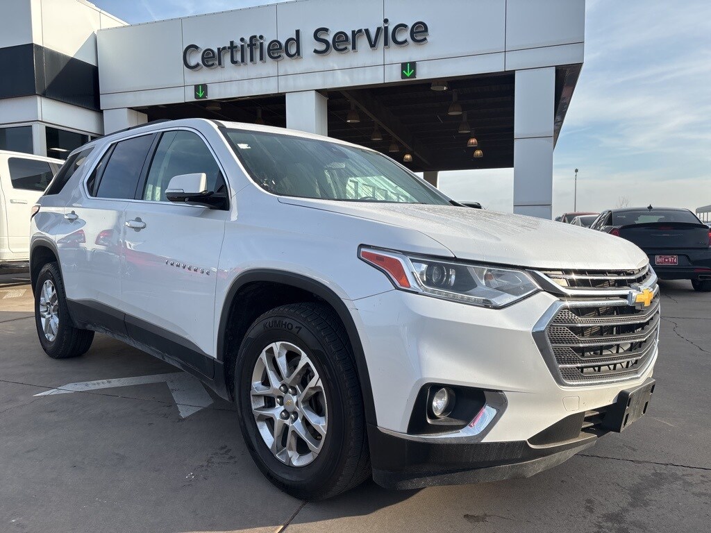 Recent Arrival! 2020 Iridescent Pearl Tricoat Chevrolet Traverse LT 1LT FWD 9-Speed Automatic 3.6L V6 SIDI VVT This Chevrolet Traverse has many features and is well equipped including, Lifetime Engine Guarantee, Lifetime Oil Changes, Accident Free Carfax, Bluetooth, Carfax One-Owner, Keyless Entry, Rear Backup Camera, **SIRIUS/XM SATELLITE RADIO**, USB, Bluetooth Hands Free, 1st & 2nd Row All-Weather Floor Mats, 3.49 Axle Ratio, 3rd Row All-Weather Floor Mats, 3rd row seats: split-bench, 4-Wheel Disc Brakes, 4.2" Multi-Color Enhanced Driver Instrument Display, 6 Speakers, 7-Passenger Seating (2-2-3 Seating Configuration), ABS brakes, Air Conditioning, All-Weather Cargo Mat (LPO), Alloy wheels, AM/FM radio: SiriusXM, Apple CarPlay/Android Auto, Automatic Emergency Braking, Automatic Heated Steering Wheel, Automatic temperature control, Brake assist, Bumpers: body-color, Compass, Convenience & Driver Confidence Package, Delay-off headlights, Driver Confidence II Package, Driver door bin, Driver vanity mirror, Dual front impact airbags, Dual front side impact airbags, Electronic Stability Control, Emergency communication system: OnStar and Chevrolet connected services capable, Following Distance Indicator, Forward Collision Alert, Four wheel independent suspension, Front anti-roll bar, Front Bucket Seats, Front Center Armrest, Front dual zone A/C, Front fog lights, Front License Plate Bracket Mounting Package, Front Pedestrian Braking, Front reading lights, Fully automatic headlights, Heated door mirrors, Heated Driver & Front Passenger Seats, High-Intensity Discharge Headlights, Illuminated entry, IntelliBeam Auto High Beam Control Headlamps, Interior Protection Package (LPO), Lane Change Alert w/Side Blind Zone Alert, Lane Keep Assist w/Lane Departure Warning, Leather steering wheel, Low tire pressure warning, Occupant sensing airbag, Outside temperature display, Overhead airbag, Overhead console, Panic alarm, Passenger door bin, Passenger vanity mirror, Power door mirrors, Power driver seat, Power steering, Power windows, Preferred Equipment Group 1LT, Premium Cloth Seat Trim, Radio data system, Radio: Chevrolet Infotainment 3 Plus System, Radio: Chevrolet Infotainment System AM/FM Stereo, Rear air conditioning, Rear anti-roll bar, Rear Cross Traffic Alert, Rear Park Assist w/Audible Warning, Rear Power Liftgate, Rear reading lights, Rear window defroster, Rear window wiper, Remote keyless entry, Remote Start, Roof rack: rails only, Security system, SiriusXM Radio, SiriusXM w/360L, Speed control, Speed-sensing steering, Spoiler, Steering wheel mounted audio controls, Tachometer, Telescoping steering wheel, Tilt steering wheel, Traction control, Trip computer, Turn signal indicator mirrors, Universal Home Remote, Variably intermittent wipers, Voltmeter, Wheels: 18" Bright Silver Painted Aluminum.