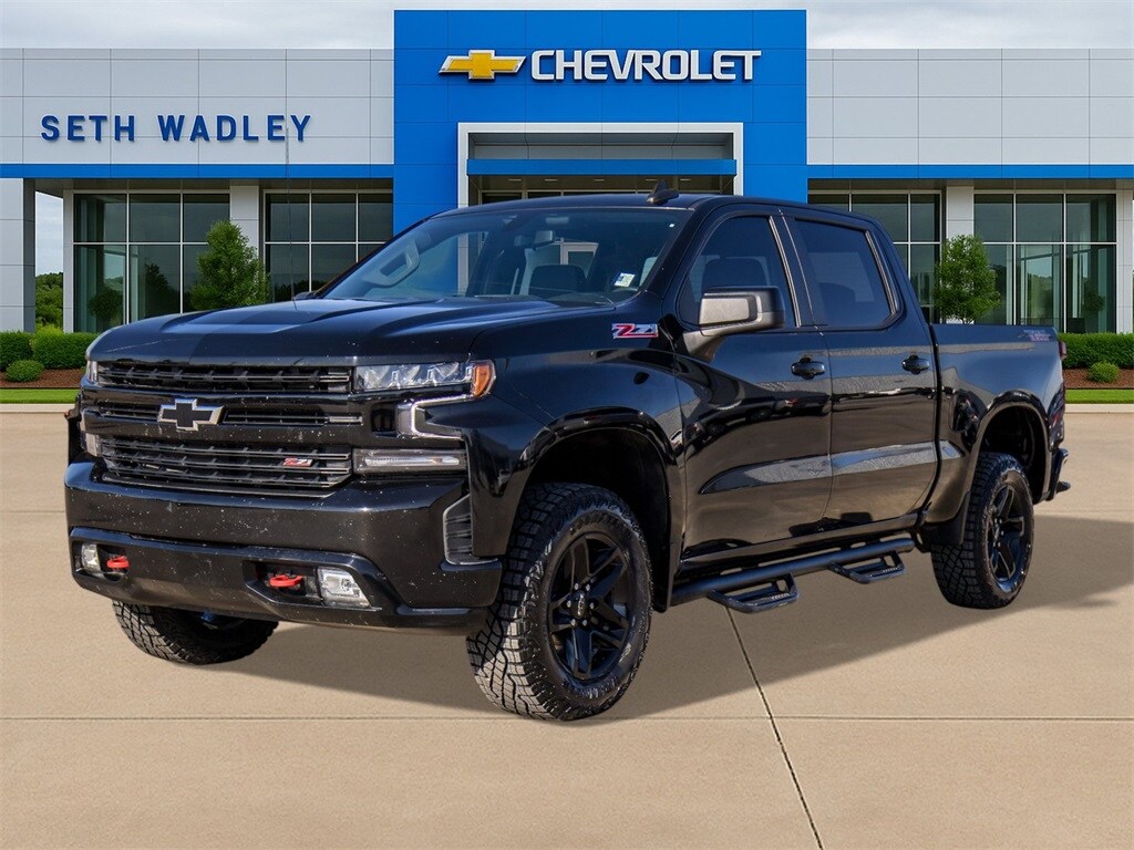 2021 Black Chevrolet Silverado 1500 LT Trail Boss Z71 4WD 10-Speed Automatic EcoTec3 5.3L V8 This Chevrolet Silverado 1500 has many features and is well equipped including, Lifetime Engine Guarantee, Lifetime Oil Changes, 10-Way Power Driver Seat w/Lumbar, 12-Volt Rear Auxiliary Power Outlet, 120-Volt Bed Mounted Power Outlet, 120-Volt Instrument Panel Power Outlet, 170 Amp Alternator, 2 USB Ports, 2 USB Ports (First Row), 3.23 Rear Axle Ratio, 4-Wheel Disc Brakes, 4.2" Diagonal Color Display Driver Info Center, 4G LTE Wi-Fi Hot Spot Capable, 6 Speakers, 6-Speaker Audio System, ABS brakes, Air Conditioning, All-Weather Floor Liner (LPO) (AAK), Alloy wheels, AM/FM radio: SiriusXM, Apple CarPlay/Android Auto, Auto-Locking Rear Differential, Automatic temperature control, Auxiliary External Transmission Oil Cooler, Bluetooth® For Phone, Brake assist, Chevrolet Connected Access Capable, Cloth Rear Seat w/Storage Package, Cloth Seat Trim, Color-Keyed Carpeting Floor Covering, Compass, Convenience Package II, Convenience Package w/Buckets Seats, Deep-Tinted Glass, Delay-off headlights, Driver door bin, Driver vanity mirror, Dual Exhaust w/Polished Outlets, Dual front impact airbags, Dual front side impact airbags, Dual-Zone Automatic Climate Control, Electric Rear-Window Defogger, Electrical Lock Control Steering Column, Electronic Cruise Control, Electronic Stability Control, EZ Lift Power Lock & Release Tailgate, Floor Mounted Center Console, Front anti-roll bar, Front Bucket Seats, Front Center Armrest w/Storage, Front dual zone A/C, Front fog lights, Front LED Fog Lamps, Front reading lights, Front wheel independent suspension, Fully automatic headlights, HD Radio, HD Rear Vision Camera, Heated door mirrors, Heated Driver & Front Outboard Passenger Seats, Heated front seats, Heated Steering Wheel, Heated steering wheel, Heavy-Duty Air Filter, High Gloss Black Grille, High Gloss Black Mirror Caps, Hill Descent Control, Hitch Guidance, Illuminated entry, Integrated Trailer Brake Controller, Keyless Open & Start, Leather Package, Leather Wrapped Steering Wheel, Leather-Appointed Front Seat Trim, LED Cargo Area Lighting, LED Reflector Headlamps, Low tire pressure warning, Manual Tilt/Telescoping Steering Column, Occupant sensing airbag, Off-Road Suspension w/2" Lift, OnStar & Chevrolet Connected Services Capable, Outside temperature display, Overhead airbag, Overhead console, Panic alarm, Passenger door bin, Passenger vanity mirror, Performance Red Recovery Hooks, Power Door Locks, Power door mirrors, Power driver seat, Power Front Windows w/Driver Express Up/Down, Power Front Windows w/Passenger Express Down, Power Rear Windows w/Express Down, Power Sliding Rear Window w/Rear Defogger, Power steering, Power windows, Preferred Equipment Group 2LT, Premium audio system: Chevrolet Infotainment 3, Premium Bose 7-Speaker Sound System, Radio data system, Radio: Chevrolet Infotainment 3 Plus System, Radio: Chevrolet Infotainment 3 System, Rear Dual USB Charging-Only Ports, Rear reading lights, Rear seat center armrest, Rear step bumper, Rear Vision Camera, Rear window defroster, Remote keyless entry, Remote Vehicle Starter System, Security system, SiriusXM Radio, SiriusXM w/360L, Speed control, Speed-sensing steering, Split folding rear seat, Standard Tailgate, Steering Wheel Audio Controls, Steering wheel mounted audio controls, Suspension Package, Tachometer, Telescoping steering wheel, Theft Deterrent System (Unauthorized Entry), Tilt steering wheel, Traction control, Trailering Package, Trip computer, Universal Home Remote, Up-Level Rear Seat w/Storage Package, Variably intermittent wipers, Voltmeter, Wheels: 18" x 8.5" Black Painted Aluminum, Wireless Phone Projection.