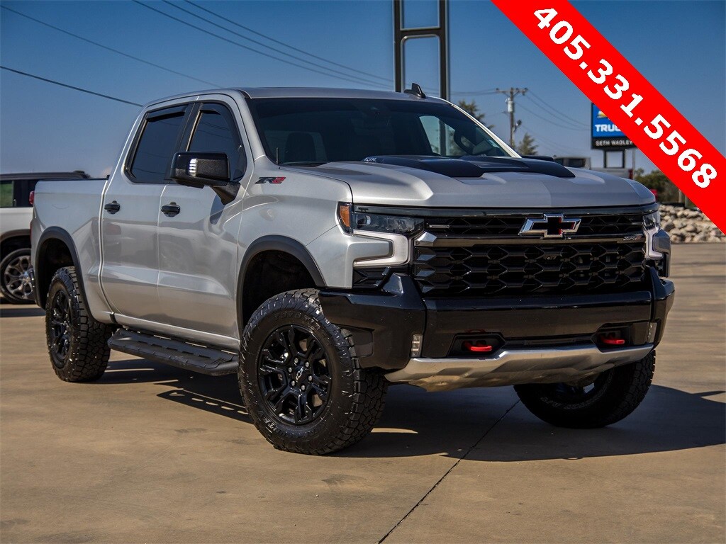 Certified. New Price! 2022 Silver Ice Metallic Chevrolet Silverado 1500 ZR2 4WD 10-Speed Automatic EcoTec3 6.2L V8 This Chevrolet Silverado 1500 has many features and is well equipped including, Lifetime Engine Guarantee, Lifetime Oil Changes, Accident Free Carfax, Carfax One-Owner, 10-Way Power Driver Seat w/Lumbar, 10-Way Power Passenger Seat Adjuster w/Lumbar, 12.3" Multicolor Reconfigurable Digital Display, 120-Volt Bed Mounted Power Outlet, 120-Volt Instrument Panel Power Outlet, 15" Diagonal Multicolor Head-Up Display, 170 Amp Alternator, 2 USB Data Ports, 2nd Row Heated Outboard Seats, 4-Wheel Disc Brakes, 7 Speakers, ABS brakes, Adaptive Cruise Control, Air Conditioning, All-Weather Floor Liner (LPO), AM/FM radio: SiriusXM with 360L, Apple CarPlay/Android Auto, Auto High-beam Headlights, Auto-dimming door mirrors, Auto-Dimming Inside Rear-View Mirror, Auto-dimming Rear-View mirror, Auto-Locking Rear Differential, Automatic Emergency Braking, Automatic temperature control, Bed View Camera, Bluetooth® For Phone, Brake assist, Chevrolet Connected Access Capable, Chevytec Spray-On Black Bedliner, Color-Keyed Carpeting Floor Covering, Compass, Deep-Tinted Glass, Delay-off headlights, Driver door bin, Driver Memory, Driver vanity mirror, Dual Exhaust, Dual front impact airbags, Dual front side impact airbags, Dual Rear USB Ports (Charge Only), Electric Rear-Window Defogger, Electrical Steering Column Lock, Electronic Cruise Control, Electronic Stability Control, Electronic Transmission Range Selector Shifter, EZ Lift Power Lock & Release Tailgate, Floor Mounted Center Console, Following Distance Indicator, Forward Collision Alert, Front anti-roll bar, Front Bucket Seats, Front Center Armrest, Front dual zone A/C, Front fog lights, Front LED Fog Lamps, Front License Plate Kit, Front Pedestrian Braking, Front Rainsensing Wipers, Front reading lights, Front wheel independent suspension, Fully automatic headlights, Garage door transmitter, HD Surround Vision, Heated door mirrors, Heated Driver & Front Outboard Passenger Seats, Heated front seats, Heated rear seats, Heated Steering Wheel, Heated steering wheel, Heavy-Duty Air Filter, High Gloss Black Mirror Caps, Hill Descent Control, Hitch Guidance, Hitch Guidance w/Hitch View, Illuminated entry, Integrated Trailer Brake Controller, IntelliBeam Automatic High Beam On/Off, Keyless Open & Start, Lane Keep Assist w/Lane Departure Warning, Leather Wrapped Steering Wheel, LED Cargo Area Lighting, Low tire pressure warning, Manual Tilt/Telescoping Steering Column, Memory seat, Multi-Flex Tailgate, Not Equipped w/Steering Column Lock, Occupant sensing airbag, OnStar & Chevrolet Connected Services Capable, Outside Heated Power-Adjustable Mirrors, Outside temperature display, Overhead airbag, Overhead console, Panic alarm, Passenger door bin, Passenger vanity mirror, Perforated Leather Seat Trim, Performance Red Recovery Hooks, Perimeter Lighting, Power door mirrors, Power driver seat, Power Front Passenger Windows w/Express Up/Down, Power Front Windows w/Driver Express Up/Down, Power passenger seat, Power Rear Windows w/Express Down, Power Sliding Rear Window w/Rear Defogger, Power steering, Power Sunroof, Power Tilt & Telescoping Steering Column, Power windows, Preferred Equipment Group 3LT, Premium audio system: Chevrolet Infotainment 3 Premium, Premium Bose 7-Speaker Sound System, Radio data system, Radio: Chevrolet Infotainment 3 Premium System, Rain sensing wipers, Rear Camera Mirror, Rear Cross Traffic Alert-Braking, Rear Park Assist, Rear Pedestrian Detection, Rear reading lights, Rear seat center armrest, Rear step bumper, Rear Wheelhouse Liners, Rear window defroster, Remote keyless entry, Remote Vehicle Starter System, Rocker Protector (LPO), Safety Alert Seat, Security system, SiriusXM w/360L, Speed control, Speed-sensing steering, Split folding rear seat, Standard Tailgate, Steering Wheel Audio Controls, Steering wheel mounted audio controls, Tachometer, Technology Package,