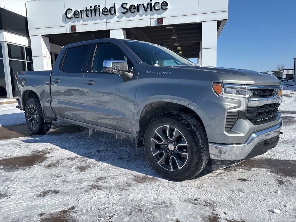2023 Sterling Gray Metallic Chevrolet Silverado 1500 LT 4WD 8-Speed Automatic 2.7L Turbo This Chevrolet Silverado 1500 has many features and is well equipped including, Lifetime Engine Guarantee, Lifetime Oil Changes, Bluetooth, Carfax One-Owner, Keyless Entry, Rear Backup Camera, Remote Start, **SIRIUS/XM SATELLITE RADIO**, Tow Package, All Wheel Drive / 4x4, USB, Bluetooth Hands Free, 10-Way Power Driver Seat w/Lumbar, 12.3" Multicolor Reconfigurable Digital Display, 120-Volt Bed Mounted Power Outlet, 120-Volt Instrument Panel Power Outlet, 3.42 Rear Axle Ratio, 4-Wheel Disc Brakes, 40/20/40 Front Split-Bench Seat, 6 Speakers, 6-Speaker Audio System, ABS brakes, Air Conditioning, All-Star Edition, AM/FM radio: SiriusXM with 360L, Apple CarPlay/Android Auto, Auto High-beam Headlights, Auto-Locking Rear Differential, Automatic Emergency Braking, Automatic temperature control, Bluetooth® For Phone, Brake assist, Bumpers: chrome, Chevrolet Connected Access Capable, Chrome Mirror Caps, Cloth Seat Trim, Color-Keyed Carpeting Floor Covering, Compass, Convenience Package, Deep-Tinted Glass, Delay-off headlights, Driver door bin, Driver vanity mirror, Dual front impact airbags, Dual front side impact airbags, Dual Rear USB Ports (Charge Only), Dual-Zone Automatic Climate Control, Electric Rear-Window Defogger, Electrical Steering Column Lock, Electronic Cruise Control, Electronic Stability Control, Following Distance Indicator, Forward Collision Alert, Front anti-roll bar, Front Center Armrest w/Storage, Front dual zone A/C, Front Frame-Mounted Black Recovery Hooks, Front Pedestrian Braking, Front reading lights, Front wheel independent suspension, Fully automatic headlights, HD Rear Vision Camera, Heated door mirrors, Heated Driver & Front Outboard Passenger Seats, Heated front seats, Heated Steering Wheel, Heated steering wheel, High Capacity Suspension Package, Hitch Guidance, Illuminated entry, IntelliBeam Automatic High Beam On/Off, Keyless Open & Start, Lane Keep Assist w/Lane Departure Warning, LED Cargo Area Lighting, Low tire pressure warning, Not Equipped w/Steering Column Lock, Occupant sensing airbag, OnStar & Chevrolet Connected Services Capable, Outside temperature display, Overhead airbag, Overhead console, Panic alarm, Passenger door bin, Passenger vanity mirror, Power door mirrors, Power driver seat, Power Front Windows w/Driver Express Up/Down, Power Front Windows w/Passenger Express Down, Power Rear Windows w/Express Down, Power steering, Power windows, Premium audio system: Chevrolet Infotainment 3 Premium, Radio data system, Radio: Chevrolet Infotainment 3 Premium System, Rear 60/40 Folding Bench Seat (Folds Up), Rear reading lights, Rear step bumper, Rear window defroster, Remote keyless entry, Remote Vehicle Starter System, Security system, SiriusXM w/360L, Speed control, Speed-sensing steering, Split folding rear seat, Standard Suspension Package, Steering Wheel Audio Controls, Steering wheel mounted audio controls, Tachometer, Telescoping steering wheel, Theft Deterrent System (Unauthorized Entry), Tilt steering wheel, Traction control, Trailering Package, Trip computer, Variably intermittent wipers, Voltmeter, Wheels: 20" x 9" Painted Aluminum, Wi-Fi Hot Spot Capable, Wireless Phone Projection, Wrapped Steering Wheel.