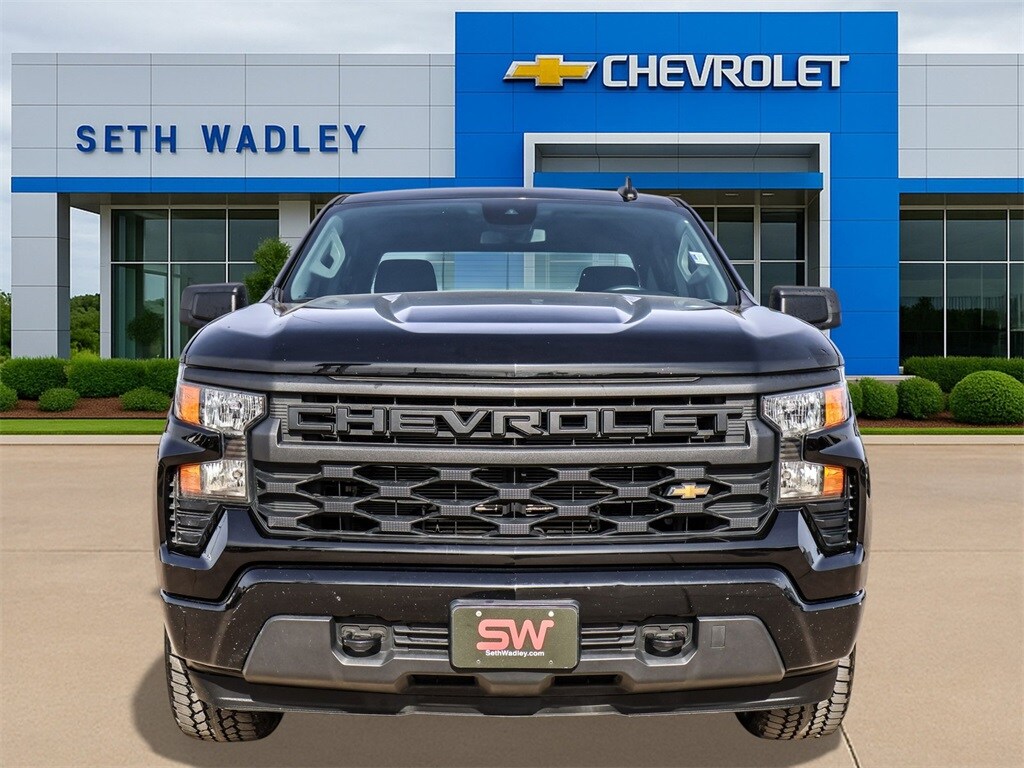 2023 Black Chevrolet Silverado 1500 Custom 4WD 8-Speed Automatic 2.7L Turbo This Chevrolet Silverado 1500 has many features and is well equipped including, Lifetime Engine Guarantee, Lifetime Oil Changes, Bluetooth, Carfax One-Owner, Keyless Entry, Rear Backup Camera, **SIRIUS/XM SATELLITE RADIO**, Tow Package, All Wheel Drive / 4x4, USB, Bluetooth Hands Free, 10-Way Power Driver Seat w/Lumbar, 120-Volt Bed Mounted Power Outlet, 120-Volt Instrument Panel Power Outlet, 3.42 Rear Axle Ratio, 3.5" Monochromatic Display Driver Info Center, 4-Wheel Disc Brakes, 40/20/40 Front Split-Bench Seat, 6 Speakers, 6-Speaker Audio System, ABS brakes, Air Conditioning, Alloy wheels, AM/FM radio: SiriusXM, Apple CarPlay/Android Auto, Assist Step & Tonneau Value Package I (LPO), Auto High-beam Headlights, Automatic Emergency Braking, Black Work Step (LPO), Bluetooth® For Phone, Brake assist, Bumpers: body-color, Chevrolet Connected Access Capable, Cloth Seat Trim, Color-Keyed Carpeting Floor Covering, Compass, Custom Convenience Package, Custom Value Package, Deep-Tinted Glass, Delay-off headlights, Driver door bin, Driver vanity mirror, Dual front impact airbags, Dual front side impact airbags, Dual Rear USB Ports (Charge Only), Electric Rear-Window Defogger, Electrical Steering Column Lock, Electronic Cruise Control, Electronic Stability Control, EZ Lift Power Lock & Release Tailgate, Following Distance Indicator, Forward Collision Alert, Front anti-roll bar, Front Center Armrest w/Storage, Front Frame-Mounted Black Recovery Hooks, Front License Plate Kit, Front Pedestrian Braking, Front reading lights, Front Rubberized Vinyl Floor Mats, Front wheel independent suspension, Fully automatic headlights, HD Rear Vision Camera, Heated door mirrors, High Capacity Suspension Package, Hitch Guidance, Illuminated entry, IntelliBeam Automatic High Beam On/Off, Lane Keep Assist w/Lane Departure Warning, LED Cargo Area Lighting, Low tire pressure warning, Manual Tilt Wheel Steering Column, Manual Tilt/Telescoping Steering Column (DISC), Not Equipped w/Rear USB Ports, Not Equipped w/Steering Column Lock, Occupant sensing airbag, OnStar & Chevrolet Connected Services Capable, Outside temperature display, Overhead airbag, Overhead console, Panic alarm, Passenger door bin, Passenger vanity mirror, Power door mirrors, Power driver seat, Power Front Windows w/Driver Express Up/Down, Power Front Windows w/Passenger Express Down, Power Rear Windows w/Express Down, Power steering, Power windows, Preferred Equipment Group 1CX, Premium audio system: Chevrolet Infotainment 3, Premium Soft Roll-Up Tonneau Cover (LPO), Radio data system, Radio: Chevrolet Infotainment 3 System, Rear 60/40 Folding Bench Seat (Folds Up), Rear reading lights, Rear Rubberized-Vinyl Floor Mats, Rear step bumper, Rear window defroster, Remote Keyless Entry, Remote keyless entry, Remote Vehicle Starter System, Security system, SiriusXM Radio, Speed control, Speed-sensing steering, Split folding rear seat, Standard Tailgate, Tachometer, Theft Deterrent System (Unauthorized Entry), Tilt steering wheel, Traction control, Trailering Package, Trip computer, Variably intermittent wipers, Voltmeter, Wheels: 20" x 9" Bright Silver Painted Aluminum, Wheels: 20" x 9" High Gloss Black Painted Alum, Wi-Fi Hot Spot Capable, Wireless Phone Projection.