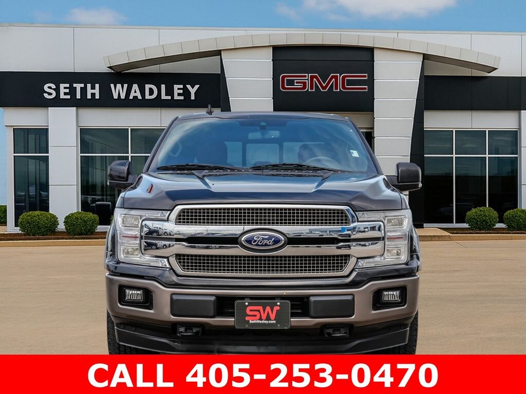 2019 Agate Black Metallic Ford F-150 King Ranch 4WD 10-Speed Automatic 3.5L V6 EcoBoost This Ford F-150 has many features and is well equipped including, Lifetime Engine Guarantee, Lifetime Oil Changes, 10 Speakers, 18" Machined-Aluminum Wheels, 20" Machined-Aluminum Wheels, 3.31 Axle Ratio, 4-Wheel Disc Brakes, ABS brakes, Adjustable pedals, Air Conditioning, Alloy wheels, AM/FM radio: SiriusXM, AppLink/Apple CarPlay and Android Auto, Auto High-beam Headlights, Auto tilt-away steering wheel, Auto-dimming door mirrors, Auto-dimming Rear-View mirror, Automatic temperature control, BLIS Blind Spot Information System, Brake assist, Class IV Trailer Hitch Receiver, Compass, Delay-off headlights, Driver door bin, Driver vanity mirror, Dual front impact airbags, Dual front side impact airbags, Electronic Stability Control, Emergency communication system: SYNC 3 911 Assist, Equipment Group 601A Luxury, Exterior Parking Camera Rear, Front anti-roll bar, Front Bucket Seats, Front Center Armrest, Front dual zone A/C, Front fog lights, Front License Plate Bracket, Front reading lights, Front wheel independent suspension, Fully automatic headlights, Garage door transmitter, Genuine wood dashboard insert, Genuine wood door panel insert, GVWR: 7,050 lbs Payload Package, Heated door mirrors, Heated front seats, Heated rear seats, Heated steering wheel, Illuminated entry, Inflatable Rear Safety Belts, Integrated Trailer Brake Controller, King Ranch Leather Bucket Seats, Low tire pressure warning, Memory seat, Multi-Contour Driver & Passenger Seats, Navigation System, Occupant sensing airbag, Outside temperature display, Overhead airbag, Overhead console, Panic alarm, Passenger door bin, Passenger vanity mirror, Pedal memory, Power door mirrors, Power driver seat, Power passenger seat, Power steering, Power windows, Power-Deployable Running Boards, Radio data system, Radio: B&O Sound System by Bang & Olufsen, Rain sensing wipers, Rear Parking Sensors, Rear reading lights, Rear seat center armrest, Rear step bumper, Rear window defroster, Remote keyless entry, Security system, SiriusXM Radio, Speed control, Speed-sensing steering, Split folding rear seat, Steering wheel memory, Steering wheel mounted audio controls, SYNC 3, Tachometer, Tailgate Step w/Tailgate Lift Assist, Telescoping steering wheel, Tilt steering wheel, Traction control, Trip computer, Turn signal indicator mirrors, Variably intermittent wipers, Ventilated front seats, Voice-Activated Touchscreen Navigation, Voltmeter.