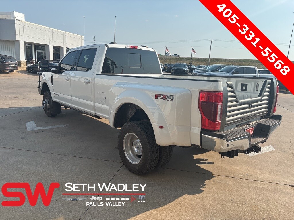 2021 White Ford F-350SD Lariat DRW 4WD 10-Speed Automatic Power Stroke 6.7L V8 DI 32V OHV Turbodiesel This Ford F-350SD has many features and is well equipped including, Lifetime Engine Guarantee, Lifetime Oil Changes, 10 Speakers, 110V/400W Outlet, 17" Forged Polished Aluminum Wheels, 4-Wheel Disc Brakes, ABS brakes, Adaptive Cruise Control & Collision Warning, Adjustable pedals, Air Conditioning, Alloy wheels, AM/FM radio: SiriusXM, Ambient Lighting - Fixed Color, Auto High-beam Headlights, Auto-dimming Rear-View mirror, Automatic temperature control, Brake assist, Bumpers: chrome, Compass, Delay-off headlights, Driver door bin, Driver vanity mirror, Dual front impact airbags, Dual front side impact airbags, Dual rear wheels, Easy Entry®/Exit Memory Driver's Seat Feature, Electronic Stability Control, Emergency communication system: SYNC 3 911 Assist, Engine Block Heater, Exterior Parking Camera Rear, Flow-Through Console, Front anti-roll bar, Front Bucket Seats, Front Center Armrest, Front dual zone A/C, Front fog lights, Front Leather Seating Surfaces 40/Console/40, Front reading lights, Front Splash Guards/Mud Flaps (Pre-Installed), Fully automatic headlights, FX4 Off-Road Package, GVWR: 14,000 lb Payload Package, Heated door mirrors, Hill Descent Control, Illuminated entry, Intelligent Access w/Push-Button Start, Lariat Ultimate Package, Leather steering wheel, LED Box Lighting, Low tire pressure warning, Memory Power-Adjustable Pedals, Off-Road Specifically Tuned Shock Absorbers, Order Code 628A, Outside temperature display, Overhead airbag, Overhead console, Panic alarm, Passenger door bin, Passenger vanity mirror, Power door mirrors, Power driver seat, Power Heated/Ventilated Driver Seat w/Memory, Power Heated/Ventilated Passenger Seat, Power passenger seat, Power steering, Power Telescoping/Tilt Steering Wheel/Column, Power windows, Power-Deployable Running Boards, PowerScope Trailer Tow Mirrors w/Heat, PowerScope Trailer Tow Mirrors w/Memory, Quad Beam LED Headlamps & LED Taillamps, Radio data system, Radio: B&O System by Bang & Olufsen, Rear anti-roll bar, Rear CHMSL Camera, Rear Parking Sensors, Rear reading lights, Rear seat center armrest, Rear step bumper, Rear window defroster, Remote keyless entry, Remote Start System, Remote Tailgate Release, Security system, SiriusXM Radio, Speed control, Split folding rear seat, Steering wheel mounted audio controls, SYNC 3 Communications & Entertainment System, Tachometer, Tailgate Step & Handle, Telescoping steering wheel, Tilt steering wheel, Traction control, Trip computer, Turn signal indicator mirrors, Twin Panel Power Moonroof, Unique FX4 Off-Road Box Decal, Upfitter Switches (6), Variably intermittent wipers, Voice-Activated Navigation.