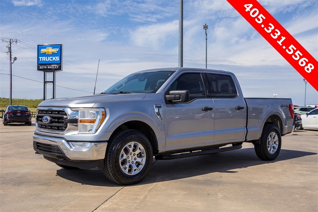 2022 Iconic Silver Metallic Ford F-150 XLT 4WD 10-Speed Automatic 5.0L V8 WTP, This Ford F-150 has many features and is well equipped including, Lifetime Oil Changes, Accident Free Carfax, Bluetooth, Carfax One-Owner, Keyless Entry, Rear Backup Camera, Remote Start, **SIRIUS/XM SATELLITE RADIO**, Tow Package, All Wheel Drive / 4x4, USB, Bluetooth Hands Free, 4-Wheel Disc Brakes, 6 Speakers, 8-Way Power Driver's Seat w/Power Lumbar, 8" Productivity Screen in Instrument Cluster, ABS brakes, Air Conditioning, Alloy wheels, AM/FM radio, Auto High-beam Headlights, Auto-Dimming Rear-View Mirror, Brake assist, Bumpers: chrome, Class IV Trailer Hitch Receiver, Cloth 40/20/40 Front Seat, Compass, Delay-off headlights, Driver door bin, Driver vanity mirror, Dual front impact airbags, Dual front side impact airbags, Dual Zone Electronic Automatic Temperature Control, Electronic Locking w/3.31 Axle Ratio, Electronic Stability Control, Emergency communication system: SYNC 4 911 Assist, Equipment Group 301A Mid, Exterior Parking Camera Rear, Front anti-roll bar, Front Center Armrest w/Storage, Front fog lights, Front reading lights, Front wheel independent suspension, Fully automatic headlights, GVWR: 7,150 lbs Payload Package, Heated door mirrors, Illuminated entry, Leather-Wrapped Steering Wheel, Low tire pressure warning, Occupant sensing airbag, Outside temperature display, Overhead airbag, Overhead console, Panic alarm, Passenger door bin, Passenger vanity mirror, Power door mirrors, Power steering, Power windows, Radio data system, Radio: AM/FM SiriusXM w/360L, Radio: AM/FM Stereo w/6 Speakers, Rear reading lights, Rear step bumper, Rear Under-Seat Storage, Rear window defroster, Remote keyless entry, SecuriCode Drivers Side Keyless-Entry Keypad, Security system, Speed control, Speed-sensing steering, Split folding rear seat, Steering wheel mounted audio controls, SYNC 4, SYNC 4 w/Enhanced Voice Recognition, Tachometer, Telescoping steering wheel, Tilt steering wheel, Traction control, Trip computer, Variably intermittent wipers, Voltmeter, Wheels: 17" Silver Painted Aluminum.