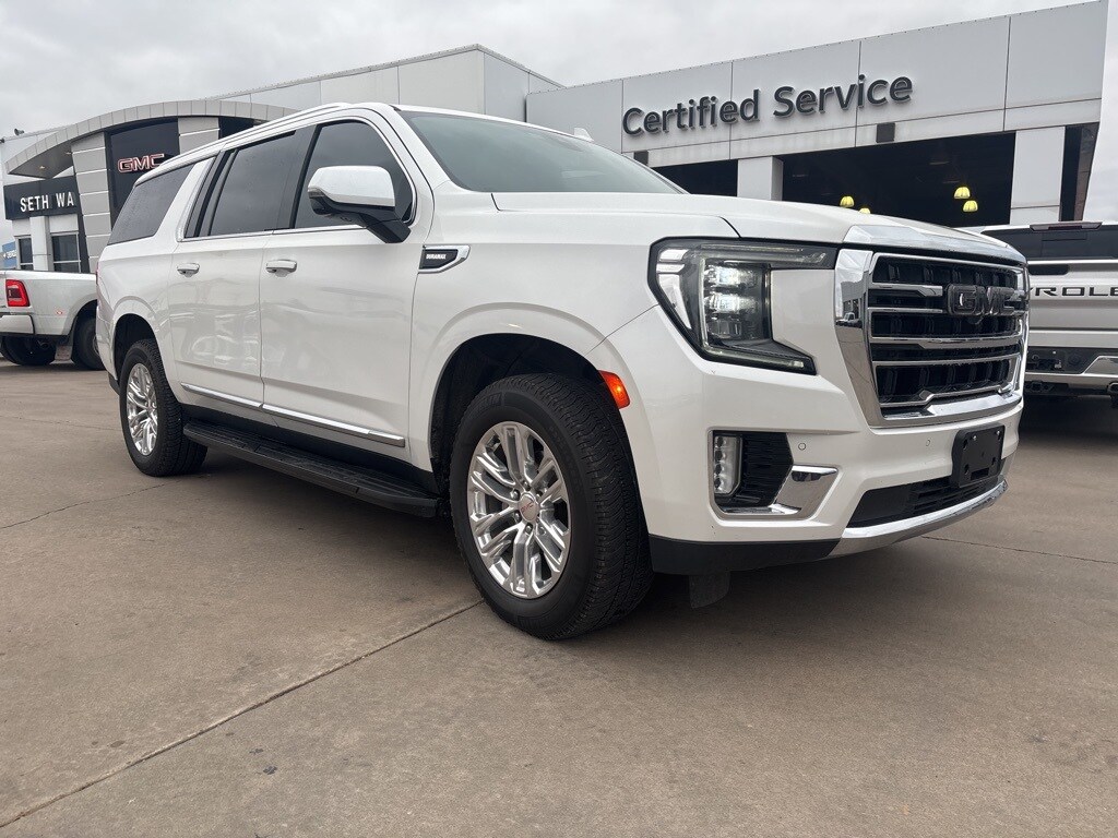 Recent Arrival! 2021 White Frost Tricoat GMC Yukon XL SLT 4WD 10-Speed Automatic with Overdrive 3.0L I6 This GMC Yukon XL has many features and is well equipped including, Lifetime Engine Guarantee, Lifetime Oil Changes, 1.5 kW Heater/Defrost Air System, 12-Way Power Seat Adjusters, 2 Presets For Outside Rearview Mirrors, 2 Presets For Power Driver Seat, 250 Amps Alternator, 3.23 Rear Axle Ratio, 3rd Row 60/40 Power-Folding Split-Bench Seat, 3rd row seats: split-bench, 4-Wheel Disc Brakes, 9 Speakers, 900 Cold-Cranking Amps Battery, ABS brakes, Air Conditioning, Alloy wheels, AM/FM radio: SiriusXM with 360L, Apple CarPlay/Android Auto, Auto High-beam Headlights, Auto-dimming Rear-View mirror, Automatic Emergency Braking, Automatic temperature control, Bodyside moldings, Bose 9-Speaker Stereo Audio System Feature, Brake assist, Bright Chrome Bodyside Moldings, Bright Front & Rear Door Sill Plates, Bumpers: body-color, Chrome Door Handles w/Body-Color Strip, Compass, Delay-off headlights, Diesel B20 Fuel, Driver door bin, Driver vanity mirror, Dual front impact airbags, Dual front side impact airbags, Dual-Pane Panoramic Power Sunroof, Electronic Stability Control, Emergency communication system: OnStar and GMC connected services capable, Floor Console, Following Distance Indicator, Forward Collision Alert, Four wheel independent suspension, Front & Rear Park Assist, Front anti-roll bar, Front Bucket Seats, Front Center Armrest, Front dual zone A/C, Front fog lights, Front Pedestrian Braking, Front reading lights, Fully automatic headlights, Garage door transmitter, Hands-Free Power Programmable Rear Liftgate, HD Radio, HD Surround Vision, Heated & Ventilated Driver & Front Passenger Seats, Heated 2nd Row Outboard Position Seats, Heated Automatic Steering Wheel, Heated door mirrors, Heated Driver & Front Passenger Seats, Heated front seats, Illuminated entry, Illuminated Mirror GMC Emblem (LPO), Inside Rear-View Auto-Dimming Mirror, IntelliBeam Automatic High Beam On/Off, Lane Change Alert w/Side Blind Zone Alert, Lane Keep Assist w/Lane Departure Warning, Leather steering wheel, License Plate Front Mounting Package, Low tire pressure warning, Memory seat, Occupant sensing airbag, Outside Heated Power-Adjustable Mirrors, Outside temperature display, Overhead airbag, Overhead console, Panic alarm, Passenger door bin, Passenger vanity mirror, Perforated Leather Seating Surfaces, Power door mirrors, Power driver seat, Power Liftgate, Power passenger seat, Power Release 2nd Row 60/40 Split-Folding Bench Seat, Power Release 2nd Row Bucket Seats, Power steering, Power Tilt & Telescopic Steering Column, Power windows, Preferred Equipment Group 4SA, Premium Smooth Ride Suspension, Radio: AM/FM/SiriusXM, Radio: AM/FM/SiriusXM w/Navigation, Rain sensing wipers, Rear air conditioning, Rear anti-roll bar, Rear Cross Traffic Alert, Rear Media & Nav Package, Rear Pedestrian Alert, Rear reading lights, Rear seat center armrest, Rear Seat Media System, Rear window defroster, Rear window wiper, Remote keyless entry, Roof rack: rails only, Safety Alert Seat, Security system, SiriusXM w/360L, SLT Luxury Package, SLT Premium Package, Speed control, Speed-sensing steering, Split folding rear seat, Spoiler, Steering wheel mounted audio controls, Tachometer, Telescoping steering wheel, Tilt steering wheel, Traction control, Trip computer, Universal Home Remote, Upper & Lower Active Aero Shutters, Variably intermittent wipers, Ventilated front seats, Voltmeter, Wheel Locks, Wheels: 20" x 9" 6-Spoke Polished Aluminum.