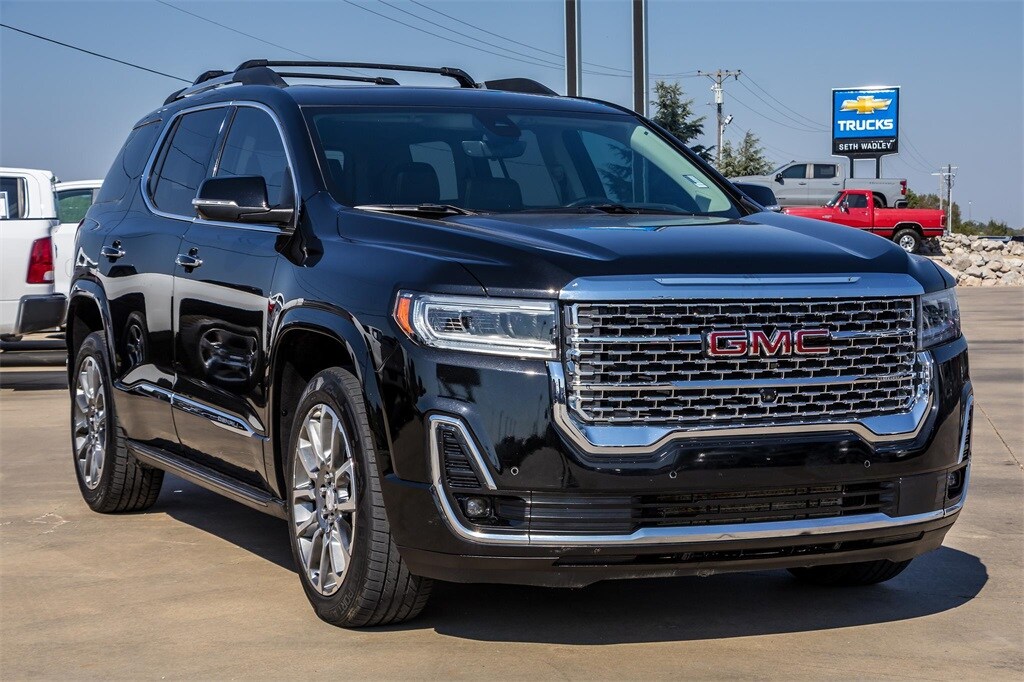 Certified. New Price! 2023 Ebony Twilight Metallic GMC Acadia Denali FWD 9-Speed Automatic 3.6L V6 SIDI This GMC Acadia has many features and is well equipped including, Lifetime Engine Guarantee, Lifetime Oil Changes, New Car Trade, 170 Amp Alternator, 1st & 2nd Row All-Weather Floor Liner (LPO), 20" Ultra Bright Machined Aluminum Wheels, 3rd Row All-Weather Floor Liner (LPO), 3rd row seats: split-bench, 4-Wheel Disc Brakes, 6-Passenger (2-2-2 Seating Configuration), 8 Speakers, 8-Way Power Driver Seat Adjuster, 8-Way Power Passenger Seat Adjuster, ABS brakes, Adaptive Cruise Control, Air Conditioning, AM/FM radio: SiriusXM with 360L, Apple CarPlay/Android Auto, Auto High-beam Headlights, Auto-dimming door mirrors, Auto-dimming Rear-View mirror, Automatic temperature control, Bose Premium 8-Speaker Audio System Feature, Brake assist, Bumpers: body-color, Compass, Delay-off headlights, Denali Technology Package, Driver door bin, Driver vanity mirror, Dual front impact airbags, Dual front side impact airbags, Dual SkyScape 2-Panel Power Sunroof, Electronic Stability Control, Emergency communication system: OnStar and GMC connected services capable, Enhanced Automatic Emergency Braking, Floor Liner Package (LPO), Four wheel independent suspension, Front anti-roll bar, Front Bucket Seats, Front Center Armrest, Front dual zone A/C, Front fog lights, Front reading lights, Fully automatic headlights, Garage door transmitter, HD Surround Vision, Heads-Up Display, Heated & Ventilated Driver & Front Passenger Seats, Heated door mirrors, Heated Driver & Front Passenger Seats, Heated front seats, Heated Rear Outboard Seating Positions, Heated rear seats, Heated steering wheel, Heavy-Duty Cooling System, Hit The Road Package, Hitch Guidance w/Hitch View, Illuminated entry, Integrated Cargo Liner (LPO), Knee airbag, Low tire pressure warning, Memory seat, Molded Assist Steps, Navigation System, Occupant sensing airbag, Outside temperature display, Overhead airbag, Overhead console, Panic alarm, Passenger door bin, Passenger vanity mirror, Perforated Leather-Appointed Seat Trim, Power door mirrors, Power Driver Lumbar Control Seat Adjuster, Power driver seat, Power Liftgate, Power Passenger Lumbar Control Seat Adjuster, Power passenger seat, Power steering, Power windows, Preferred Equipment Group 5SA, Radio data system, Radio: AM/FM 8" Diagonal Multi-Touch Navigation, Rear air conditioning, Rear anti-roll bar, Rear Camera Mirror, Rear Camera Mirror Washer, Rear reading lights, Rear window defroster, Rear window wiper, Remote keyless entry, Roof Rack Cross Rails (LPO), Security system, SiriusXM w/360L, Speed control, Speed-sensing steering, Spoiler, Steering wheel memory, Steering wheel mounted audio controls, Tachometer, Telescoping steering wheel, Tilt steering wheel, Traction control, Trailering Assist Guidelines, Trailering Package, Trip computer, Turn signal indicator mirrors, Variably intermittent wipers, Ventilated front seats, Voltmeter, Wireless Apple CarPlay/Wireless Android Auto.