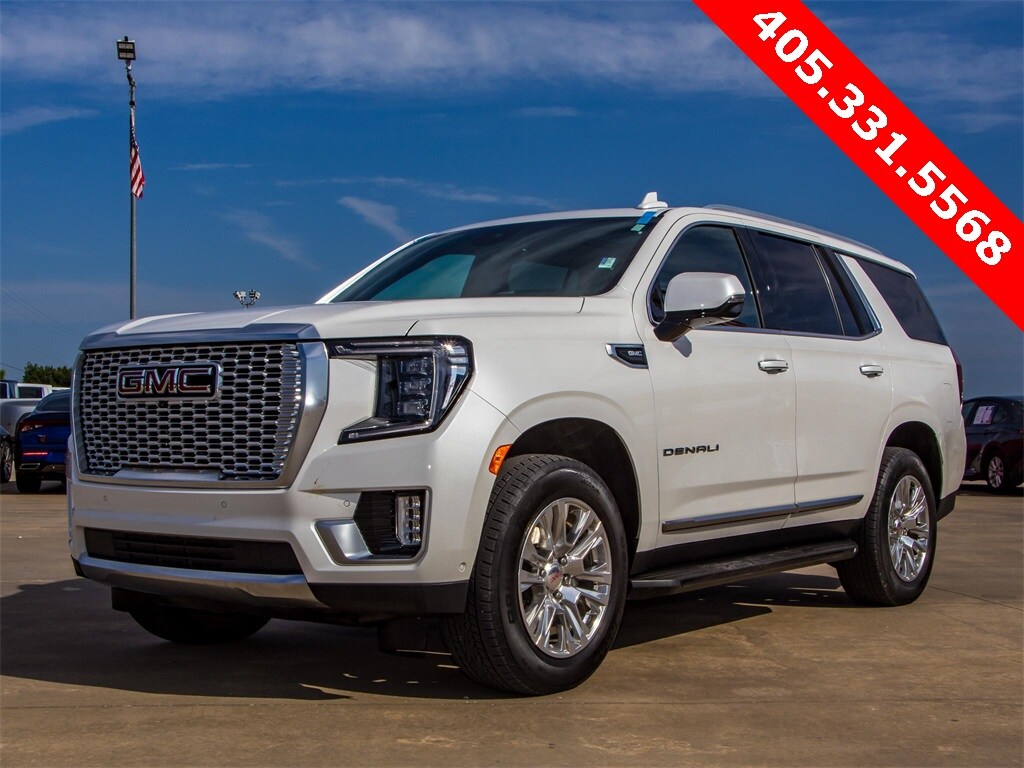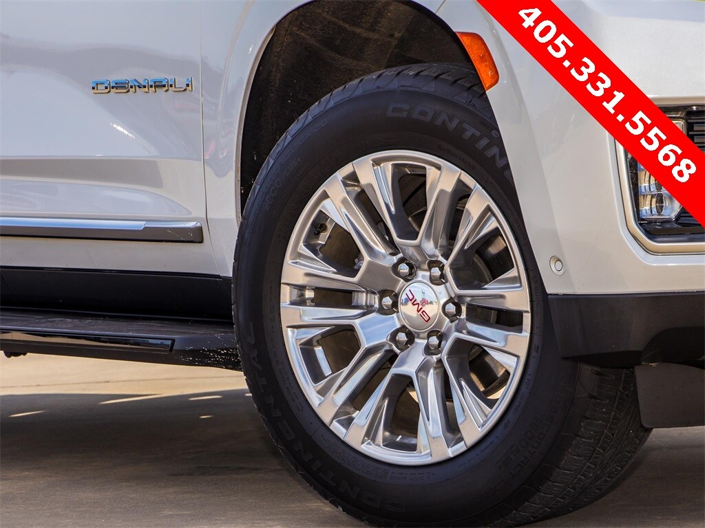 2024 White Frost Tricoat GMC Yukon Denali 4WD 10-Speed Automatic with Overdrive EcoTec3 6.2L V8 This GMC Yukon has many features and is well equipped including, Lifetime Engine Guarantee, Lifetime Oil Changes, Accident Free Carfax, Bluetooth, Carfax One-Owner, Heated / Cooled Seats, Keyless Entry, Leather, Navigation / GPS, Power Sunroof / Moonroof, Rear Backup Camera, Rear Backup Sensors, Remote Start, **SIRIUS/XM SATELLITE RADIO**, All Wheel Drive / 4x4, USB, Bluetooth Hands Free, 12-Way Power Seat Adjusters, 14 Speakers, 15" Diagonal Multi-Color Head-Up Display, 2 Presets For Outside Rearview Mirrors, 3.23 Rear Axle Ratio, 3rd Row 60/40 Power-Folding Split-Bench Seat, 3rd row seats: split-bench, 4-Wheel Disc Brakes, ABS brakes, Adaptive Cruise Control, Adaptive suspension, Advanced Security Package, Advanced Technology Package, Air Conditioning, Alloy wheels, AM/FM radio: SiriusXM with 360L, AM/FM Stereo, Apple CarPlay/Android Auto, Auto High-beam Headlights, Auto-dimming door mirrors, Auto-dimming Rear-View mirror, Auto-leveling suspension, Automatic Emergency Braking, Automatic temperature control, Bodyside moldings, Bose 14-Speaker Surround w/CenterPoint, Brake assist, Bright Front & Rear Door Sill Plates, Bumpers: body-color, Cat-Back Performance Exhaust (LPO), Chrome Door Handles w/Body-Color Strip, Compass, Delay-off headlights, Driver door bin, Driver vanity mirror, Dual Exhaust System, Dual front impact airbags, Dual front side impact airbags, Dual-Pane Panoramic Power Sunroof, Electronic Stability Control, Emergency communication system: OnStar and GMC connected services capable, Enhanced Automatic Emergency Braking, Enhanced Automatic Parking Assist, Extra Capacity Cooling System, Floor Console, Following Distance Indicator, Forward Collision Alert, Four wheel independent suspension, Front & Rear Park Assist, Front anti-roll bar, Front Bucket Seats, Front Center Armrest, Front dual zone A/C, Front fog lights, Front Pedestrian Braking, Front reading lights, Fully automatic headlights, Galvano Bodyside Moldings, Garage door transmitter, Glass Breakage Sensor, Hands-Free Power Programmable Rear Liftgate, HD Surround Vision, Heads-Up Display, Heated 2nd Row Outboard Position Seats, Heated door mirrors, Heated Driver & Front Passenger Seats, Heated front seats, Heated rear seats, Heated Steering Wheel, Heated steering wheel, Hill Descent Control, Hitch View, Illuminated entry, Inside Rear-View Auto-Dimming Mirror, Inside Rearview Auto-Dimming Rear Camera Mirror, Integrated Trailer Brake Controller, IntelliBeam Automatic High Beam On/Off, Lane Change Alert w/Side Blind Zone Alert, Lane Keep Assist w/Lane Departure Warning, Low tire pressure warning, Magnetic Ride Control Suspension, Max Trailering Package, Memory seat, Navigation System, Occupant sensing airbag, Outside Heated Power-Adjustable Mirrors, Outside temperature display, Overhead airbag, Overhead console, Panic alarm, Passenger door bin, Passenger vanity mirror, Perforated Heated & Ventilated Dr & Frt Pass Seats, Perforated Leather Seating Surfaces, Power door mirrors, Power driver seat, Power Liftgate, Power passenger seat, Power Release 2nd Row Bucket Seats, Power steering, Power Tilt & Telescopic Steering Column, Power windows, Preferred Equipment Group 5SA, Rain sensing wipers, Rear air conditioning, Rear anti-roll bar, Rear Camera Mirror Washer, Rear Cross Traffic Alert, Rear Pedestrian Alert, Rear reading lights, Rear Seat Media System, Rear window defroster, Rear window wiper, Remote keyless entry, Reverse Automatic Braking, Roof rack: rails only, Safety Alert Seat, Security system, SiriusXM w/360L, Smart Trailer Integration Indicator, Speed control, Speed-sensing steering, Split folding rear seat, Spoiler, Steering wheel memory, Steering wheel mounted audio controls, Super Cruise, Tachometer, Telescoping steering wheel, Theft-Deterrent Alarm System, Tilt steering wheel, Traction control, Trailer Side Blind Zone Alert, Trip computer, Turn signal indicat