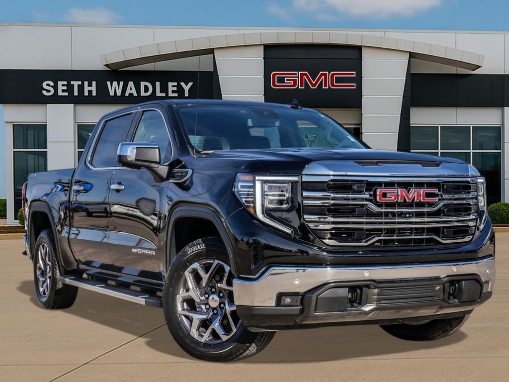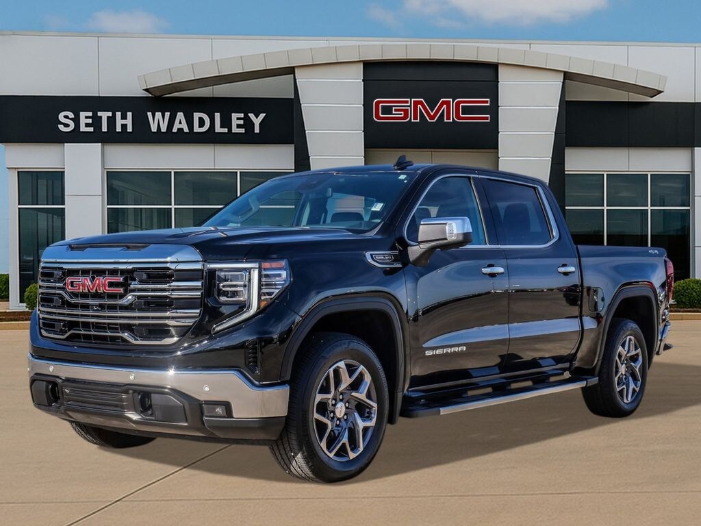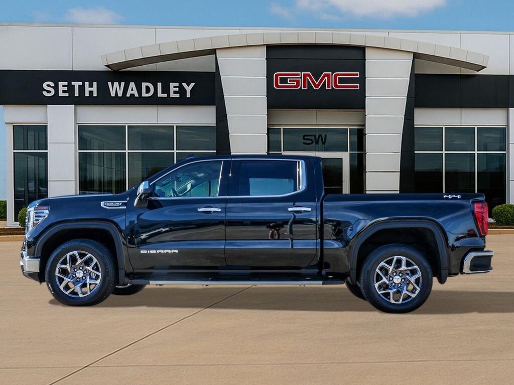 2025 Onyx Black GMC Sierra 1500 SLT 4WD 10-Speed Automatic EcoTec3 5.3L V8 This GMC Sierra 1500 has many features and is well equipped including, Lifetime Engine Guarantee, Lifetime Oil Changes, 10-Way Power Driver Seat Adjuster w/Lumbar, 10-Way Power Passenger Seat Adjuster w/Lumbar, 120-Volt Bed Mounted Power Outlet, 120-Volt Interior Power Outlet, 170 Amp Alternator, 2 Charge/Data USB Ports, 2 Charge/Data USB Ports Inside Center Console, 2 Type-C Charge-Only Rear USB Ports, 20" Polished Aluminum Wheels, 3.23 Rear Axle Ratio, 4-Wheel Disc Brakes, 6 Speakers, 6-Speaker Audio System Feature, ABS brakes, Adaptive Cruise Control, Air Conditioning, Alloy wheels, AM/FM radio: SiriusXM with 360L, Apple CarPlay/Android Auto, Auto High-beam Headlights, Auto-dimming door mirrors, Auto-dimming Rear-View mirror, Auto-Locking Rear Differential, Automatic Emergency Braking, Automatic temperature control, Auxiliary External Transmission Oil Cooler, Brake assist, Buckle to Drive, Bumpers: chrome, Chrome Header & Chrome Grille Insert Bars, Chrome Wheel To Wheel Assist Steps, Color-Keyed Carpeting Floor Covering, Compass, Deep-Tinted Glass, Delay-off headlights, Driver door bin, Driver Memory, Driver vanity mirror, Dual front impact airbags, Dual front side impact airbags, Electric Rear-Window Defogger, Electronic Precision Shift, Electronic Stability Control, Emergency communication system: OnStar, Floor-Mounted Center Console, Following Distance Indicator, Forward Collision Alert, Front 40/20/40 Split-Bench Seat, Front anti-roll bar, Front Bucket Seats, Front Center Armrest w/Storage, Front dual zone A/C, Front fog lights, Front Frame-Mounted Black Recovery Hooks, Front License Plate Kit, Front Pedestrian Braking, Front Rain-Sensing Wipers, Front reading lights, Front wheel independent suspension, Fully automatic headlights, HD Rear Vision Camera, HD Surround Vision, Heated 2nd Row Outboard Seats, Heated door mirrors, Heated Driver & Front Outboard Passenger Seating, Heated front seats, Heated steering wheel, High Capacity Suspension Package, Hitch Guidance, Hitch View, Illuminated entry, In-Vehicle Trailering System App, Integrated Trailer Brake Controller, IntelliBeam Automatic High Beam On/Off, Keyless Open & Start, Lane Keep Assist w/Lane Departure Warning, LED Cargo Area Lighting, Low tire pressure warning, Manual Tilt-Wheel & Telescoping Steering Column, Memory seat, Navigation System, Occupant sensing airbag, OnStar Services Capable, Outside temperature display, Overhead airbag, Overhead console, Panic alarm, Passenger door bin, Passenger vanity mirror, Perf Leather-Appointed Front Outboard Seat Trim, Perimeter Lighting, Power Door Locks, Power door mirrors, Power driver seat, Power Front Passenger Windows w/Express Up/Down, Power Front Windows w/Driver Express Up/Down, Power passenger seat, Power Rake & Telescoping Steering Column, Power Rear Windows w/Express Down, Power Sliding Rear Window w/Rear Defogger, Power steering, Power windows, Preferred Equipment Group 4SA, Premium Bose 7-Speaker Sound System, ProGrade Trailering System, Push Button Start, Radio data system, Radio: Premium GMC Infotainment Audio System, Rain sensing wipers, Rear Cross Traffic Braking, Rear Pedestrian Detection, Rear reading lights, Rear seat center armrest, Rear step bumper, Rear Wheelhouse Liners, Rear window defroster, Remote keyless entry, Remote Vehicle Starter System, Safety Alert Seat, Security system, Sierra Safety Plus Package, SiriusXM w/360L Trial Subscription, SLT Convenience Package, SLT Preferred Package, SLT Premium Package, Speed control, Speed-sensing steering, Split folding rear seat, Spray-On Pickup Bedliner w/GMC Logo, Standard Suspension Package, Steering Wheel Audio Controls, Steering wheel mounted audio controls, Tachometer, Telescoping steering wheel, Theft Deterrent System (Unauthorized Entry), Tilt steering wheel, Traction control, Trailer Camera Provisions, Trailer Side Blind Zone Alert, Trailering Package, Trip computer, Ultras