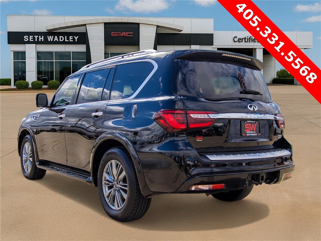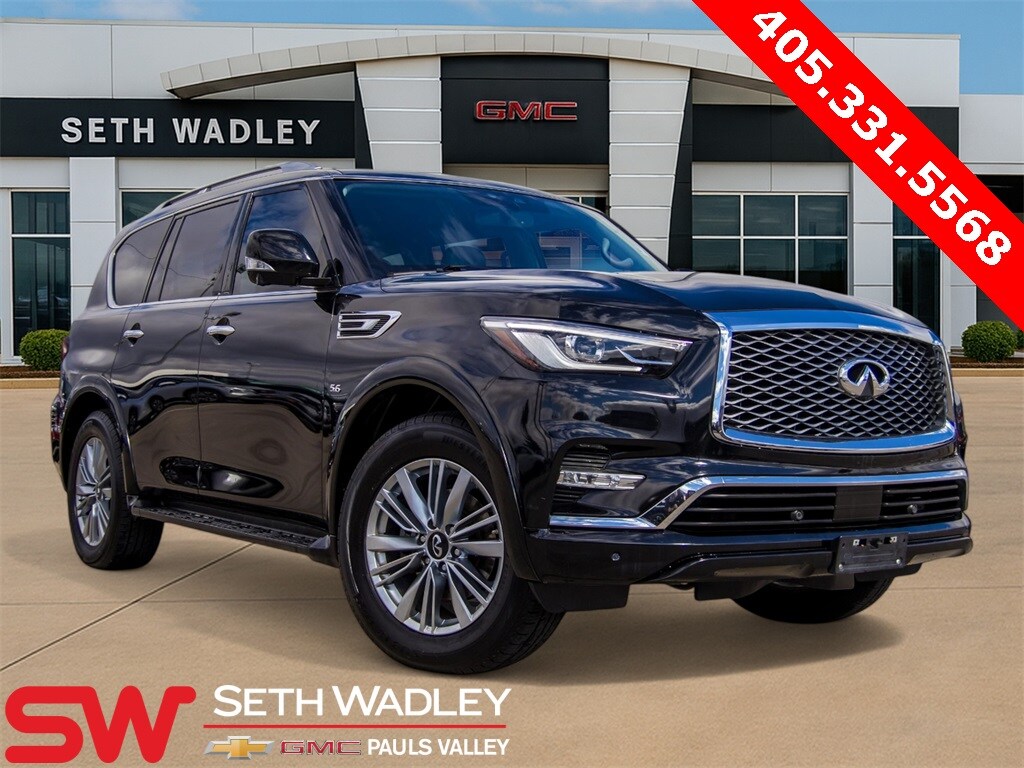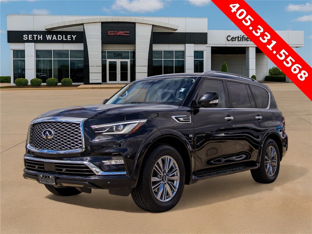 2019 Black Obsidian INFINITI QX80 LUXE RWD 7-Speed Automatic 5.6L V8 This INFINITI QX80 has many features and is well equipped including, Lifetime Engine Guarantee, Lifetime Oil Changes, Accident Free Carfax, Bluetooth, Keyless Entry, Leather, Navigation / GPS, Power Sunroof / Moonroof, Rear Backup Camera, Remote Start, **SIRIUS/XM SATELLITE RADIO**, USB, Bluetooth Hands Free, 13 Speakers, 2.94 Axle Ratio, 3rd row seats: split-bench, 4-Wheel Disc Brakes, ABS brakes, Air Conditioning, Alloy wheels, AM/FM radio: SiriusXM, Anti-whiplash front head restraints, Auto High-beam Headlights, Auto tilt-away steering wheel, Auto-dimming door mirrors, Auto-dimming Rear-View mirror, Auto-leveling suspension, Automatic temperature control, Brake assist, Bumpers: body-color, CD player, Delay-off headlights, Driver door bin, Driver vanity mirror, Dual front impact airbags, Dual front side impact airbags, DVD-Audio, Electronic Stability Control, Emergency communication system: INFINITI Connection, Four wheel independent suspension, Front anti-roll bar, Front Bucket Seats, Front Center Armrest, Front dual zone A/C, Front fog lights, Front reading lights, Fully automatic headlights, Garage door transmitter: HomeLink, Genuine wood console insert, Genuine wood dashboard insert, Genuine wood door panel insert, Heated door mirrors, Heated Front Bucket Seats, Heated front seats, Heated steering wheel, Illuminated entry, Leather Shift Knob, Leather steering wheel, Leather-Appointed Seats w/Stratford Burl Trim, Literature Kit, Low tire pressure warning, Memory seat, Navigation system: INFINITI InTouch Navigation, Occupant sensing airbag, Outside temperature display, Overhead airbag, Overhead console, Panic alarm, Passenger door bin, Passenger vanity mirror, Power door mirrors, Power driver seat, Power Liftgate, Power moonroof, Power passenger seat, Power steering, Power windows, Radio data system, Radio: AM/FM/HD w/Single In-Dash CD/DVD Player & MP3, Rain sensing wipers, Rear air conditioning, Rear anti-roll bar, Rear audio controls, Rear reading lights, Rear seat center armrest, Rear window defroster, Rear window wiper, Reclining 3rd row seat, Remote keyless entry, Roof rack: rails only, Security system, Speed control, Speed-sensing steering, Split folding rear seat, Spoiler, Steering wheel memory, Steering wheel mounted audio controls, Tachometer, Telescoping steering wheel, Tilt steering wheel, Traction control, Trip computer, Turn signal indicator mirrors, Variably intermittent wipers, Voltmeter, Wheels: 20" x 8.0" Aluminum-Alloy.