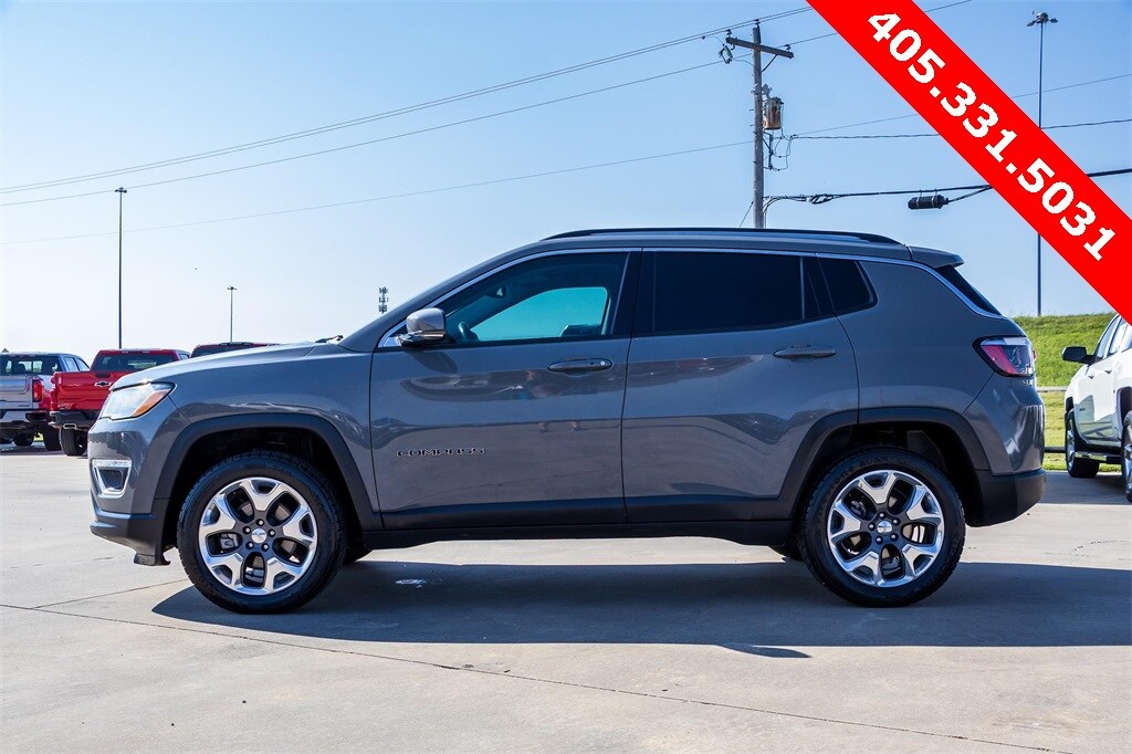 2021 Sting-Gray Clearcoat Jeep Compass Limited 4WD 9-Speed 948TE Automatic 2.4L I4 This Jeep Compass has many features and is well equipped including, Lifetime Engine Guarantee, Lifetime Oil Changes, Bluetooth, Keyless Entry, Leather, Rear Backup Camera, Remote Start, **SIRIUS/XM SATELLITE RADIO**, All Wheel Drive / 4x4, USB, Bluetooth Hands Free, 3.73 Axle Ratio, 4-Wheel Disc Brakes, 6 Speakers, ABS brakes, Air Conditioning, Alloy wheels, AM/FM radio: SiriusXM, Anti-whiplash front head restraints, Apple CarPlay/Android Auto, Auto-dimming Rear-View mirror, Automatic temperature control, Brake assist, Bumpers: body-color, Compass, Delay-off headlights, Driver door bin, Driver vanity mirror, Dual front impact airbags, Dual front side impact airbags, Electronic Stability Control, Four wheel independent suspension, Front anti-roll bar, Front Bucket Seats, Front Center Armrest w/Storage, Front dual zone A/C, Front fog lights, Front License Plate Bracket, Front reading lights, Fully automatic headlights, Heated door mirrors, Heated front seats, Heated steering wheel, Illuminated entry, Knee airbag, Leather Shift Knob, Leather Trimmed Bucket Seats, Low tire pressure warning, Manufacturer's Statement of Origin, Occupant sensing airbag, Outside temperature display, Overhead airbag, Overhead console, Panic alarm, ParkView Rear Back-Up Camera, Passenger door bin, Passenger vanity mirror, Power door mirrors, Power driver seat, Power steering, Power windows, Quick Order Package 2GG, Radio: Uconnect 4 w/8.4" Display, Rain sensing wipers, Rear anti-roll bar, Rear seat center armrest, Rear window defroster, Rear window wiper, Remote keyless entry, Roof rack: rails only, Security system, Speed control, Split folding rear seat, Spoiler, Steering wheel mounted audio controls, Tachometer, Telescoping steering wheel, Tilt steering wheel, Traction control, Trip computer, Turn signal indicator mirrors, Variably intermittent wipers, Wheels: 18" x 7.0" Polished/Gray Pockets Aluminum.