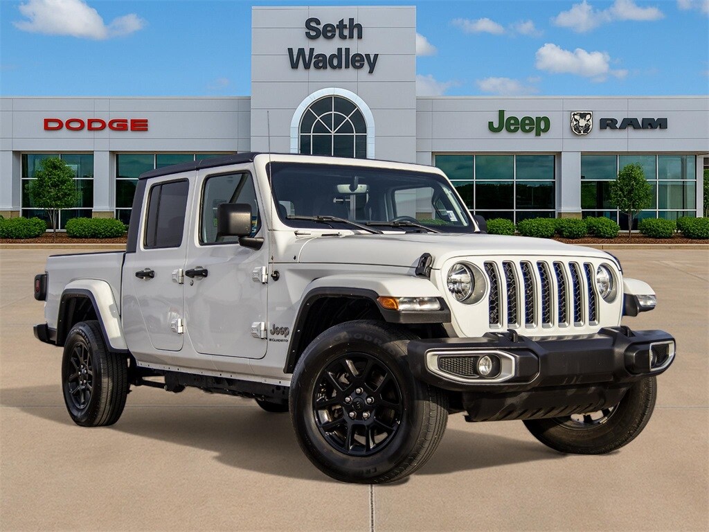 2023 Bright White Clearcoat Jeep Gladiator Overland 4WD 8-Speed Automatic 3.6L V6 24V VVT This Jeep Gladiator has many features and is well equipped including, Lifetime Engine Guarantee, Lifetime Oil Changes, Accident Free Carfax, Bluetooth, Carfax One-Owner, Rear Backup Camera, **SIRIUS/XM SATELLITE RADIO**, Tow Package, All Wheel Drive / 4x4, USB, Bluetooth Hands Free, 3.73 Rear Axle Ratio, 4-Wheel Disc Brakes, 9 Speakers, ABS brakes, Air Conditioning, Alloy wheels, AM/FM radio: SiriusXM, Apple CarPlay/Android Auto, Auto-dimming Rear-View mirror, Automatic temperature control, Brake assist, Compass, Delay-off headlights, Driver door bin, Driver vanity mirror, Dual front impact airbags, Dual front side impact airbags, Electronic Stability Control, Emergency communication system, Front anti-roll bar, Front Bucket Seats, Front Center Armrest w/Storage, Front dual zone A/C, Front fog lights, Front reading lights, Fully automatic headlights, Garage door transmitter, Heated door mirrors, Illuminated entry, Integrated roll-over protection, Low tire pressure warning, Navigation System, Normal Duty Plus Suspension (DISC), Occupant sensing airbag, Outside temperature display, Overland Cloth Bucket Seats (DISC), Panic alarm, ParkView Rear Back-Up Camera, Passenger door bin, Passenger vanity mirror, Power door mirrors, Power steering, Power windows, Quick Order Package 24G Overland (DISC), Radio data system, Radio: Uconnect 4C Nav w/8.4" Display, Rear anti-roll bar, Rear reading lights, Remote keyless entry, Security system, Selec-Speed Control, Speed control, Split folding rear seat, Steering wheel mounted audio controls, Tachometer, Telescoping steering wheel, Tilt steering wheel, Traction control, Trip computer, Variably intermittent wipers, Voltmeter, Wheels: 18" x 7.5" Granite Crystal Aluminum (DISC).