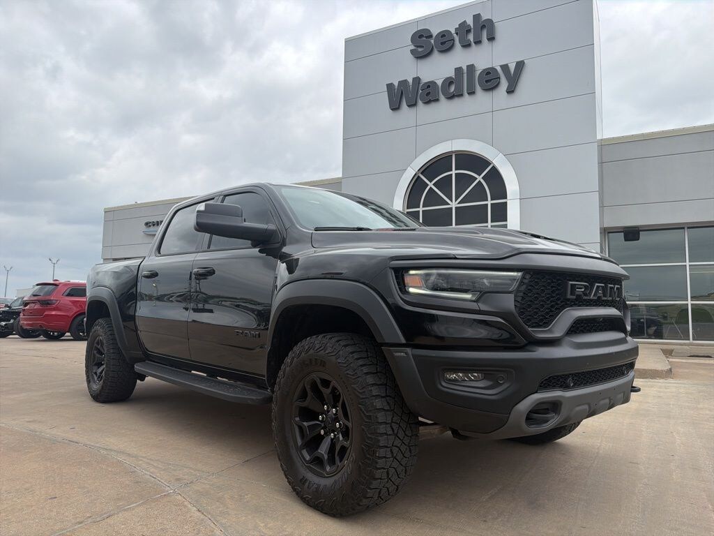 Recent Arrival! 2023 Diamond Black Crystal Pearlcoat Ram 1500 TRX 4WD 8-Speed Automatic 6.2L Supercharged HEMI V8 SRT This Ram 1500 has many features and is well equipped including, Lifetime Oil Changes, Accident Free Carfax, Bluetooth, Keyless Entry, Leather, Navigation / GPS, Rear Backup Camera, Remote Start, **SIRIUS/XM SATELLITE RADIO**, Tow Package, All Wheel Drive / 4x4, USB, Bluetooth Hands Free, #2 Seat Foam Cushion, 10 Speakers, 2-Door Passive Entry, Front Door Locks, 3.55 Rear Axle Ratio, 4 Way Front Headrests, 4-Wheel Disc Brakes, ABS brakes, Accent Color Door Handles, Adaptive suspension, Air Conditioning, Alloy wheels, AM/FM radio: SiriusXM with 360L, Apple CarPlay/Android Auto, Auto High-beam Headlights, Auto-dimming door mirrors, Auto-dimming Rear-View mirror, Automatic temperature control, Black Exterior Mirrors, Black Power-Fold Trailer Tow Mirrors, Blind Spot & Cross Path Detection, Brake assist, Bucket Seats, Center Console Parts Module, Cloth/Vinyl Bucket Seats, Compass, Delay-off headlights, Digital Rearview Mirror, Dome Dual LED Reading Lamp, Driver door bin, Driver Seat Memory, Driver/Passenger Wrapped Assist Handles, Dual front impact airbags, Dual front side impact airbags, Dual-Pane Panoramic Sunroof, Electronic Stability Control, Engine Block Heater, Exterior Mirrors Courtesy Lamps, Exterior Mirrors w/Heating Element, Exterior Mirrors w/Memory, Exterior Mirrors w/Supplemental Signals, Front anti-roll bar, Front Bucket Seats, Front Center Armrest w/Storage, Front Door Accent Lighting, Front dual zone A/C, Front fog lights, Front reading lights, Front Seat Back Map Pockets, Front wheel independent suspension, Full Length Premium Upgraded Floor Console, Fully automatic headlights, harman/kardon 19 Speaker Premium Sound, harman/kardon 19 Speaker Premium Sound (DISC), Heads-Up Display, Heated door mirrors, Heated Front Seats, Heated Second Row Seats, Heated Steering Wheel, Illuminated entry, IP LED Ambient Light Pipe, Leather Shift Knob, Leather steering wheel, Leather Trimmed Bucket Seats, Leather/Carbon Flat-Bottom Steering Wheel, Leather/Suede Flat-Bottom Steering Wheel, LED CHMSL Lamp, Low tire pressure warning, Luxury Front Door Trim Panel, Mirror Clearance/Running Lights, Mirror-Mounted Aux Reverse Lamps, MOPAR Bed-Mounted Tire Carrier, MOPAR Bright Pedal Kit, MOPAR Off-Road Style Running Boards, MOPAR Rambar, Navigation System, Occupant sensing airbag, Outside temperature display, Overhead airbag, Overhead console, Panic alarm, ParkSense Front/Rear Park Assist w/Stop, ParkView Rear Back-Up Camera, Passenger door bin, Passenger vanity mirror, Pick-Up Box Lighting, Power 4-Way Driver Lumbar Adjust, Power 4-Way Passenger Lumbar Adjust, Power 8-Way Driver & Passenger Seats, Power Adjustable Pedals w/Memory, Power door mirrors, Power driver seat, Power steering, Power windows, Power-Folding Mirrors, Premium Wrapped IP Bezel, Quick Order Package 29Y, Radio data system, Radio: Uconnect 5 Nav w/12.0" Display, Radio/Driver Seat/Mirrors/Pedals Memory, Rain Sensitive Windshield Wipers, Real Carbon Fiber Interior Accents, Rear 60/40 Folding Seat, Rear 60/40 Folding Split Recline Seat, Rear Door Accent Lighting, Rear seat center armrest, Rear step bumper, Rear Underseat Compartment Storage, Rear Window Defroster, Remote keyless entry, Remote Tailgate Release, Security system, Speed control, Split folding rear seat, Sport steering wheel, Steering wheel mounted audio controls, Sun Visors w/Illuminated Vanity Mirrors, Surround View Camera System, Tachometer, Telescoping steering wheel, Tilt steering wheel, Traction control, Trailer Brake Control, Trailer Light Check, Trailer Reverse Steering Control, Trailer Tire Pressure Monitoring System, Trailer Tow Group, Trailer Tow Mirrors, Trip computer, TRX Carbon Fiber Package, TRX Level 2 Equipment Group, TRX Red Interior Accents, Turn signal indicator mirrors, Universal Garage Door Opener, Variably intermittent wipers, Ventilated Front Seats, Ventilated Rear Seats, Volt