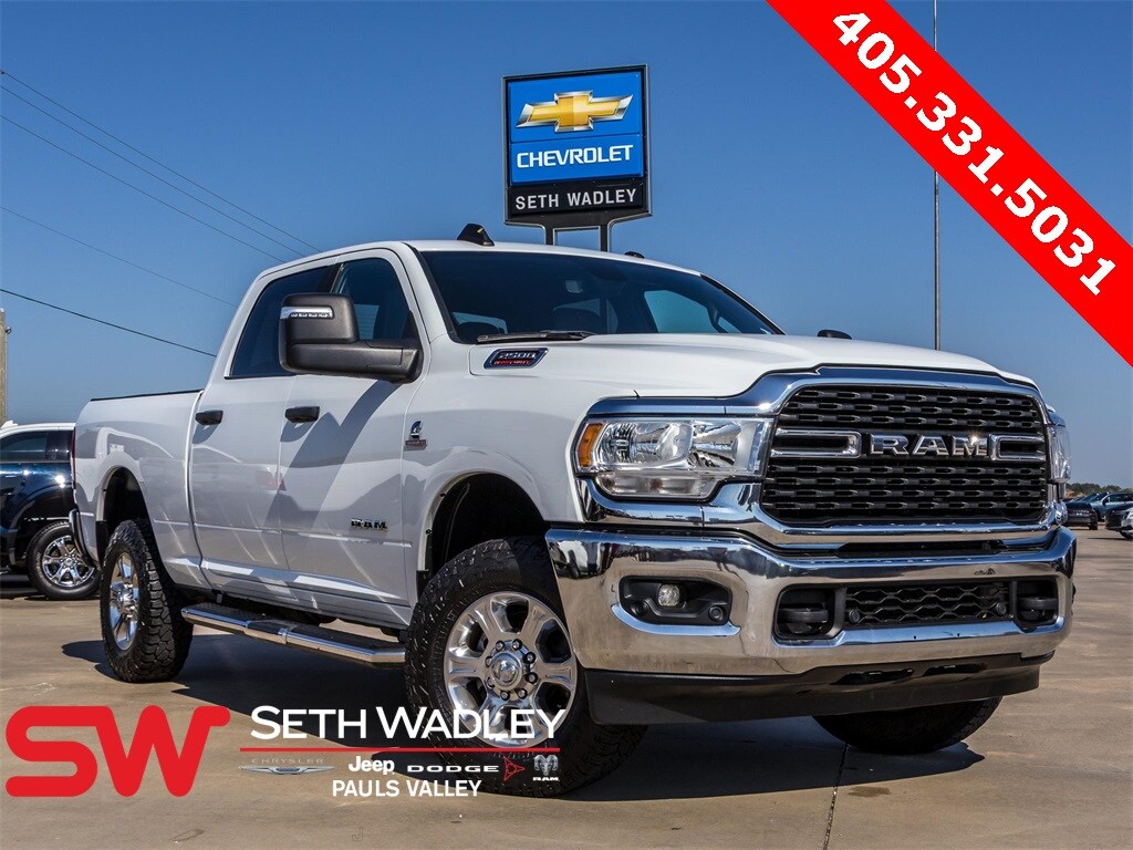 2024 Bright White Clearcoat Ram 2500 Big Horn 4WD 6-Speed Automatic Cummins 6.7L I6 Turbodiesel This Ram 2500 has many features and is well equipped including, Lifetime Engine Guarantee, Lifetime Oil Changes, Bluetooth, Carfax One-Owner, Heated Mirrors, Keyless Entry, Rear Backup Camera, **SIRIUS/XM SATELLITE RADIO**, Tow Package, All Wheel Drive / 4x4, USB, Bluetooth Hands Free, 2 Way Rear Headrest Seat, 220 Amp Alternator, 2nd Row In Floor Storage Bins, 3.73 Axle Ratio, 4 Way Front Headrests, 4-Wheel Disc Brakes, 40/20/40 Split Bench Seat, 4G LTE Wi-Fi Hot Spot, 6 Speakers, 8.4" Touchscreen Display, ABS brakes, Active Noise Control System, Air Conditioning, Anti-Spin Differential Rear Axle, Apple CarPlay, Auto Power-Folding Mirrors, Big Horn IP Badge, Black Exterior Mirrors, Bluetooth Handsfree Phone & Audio, Brake assist, Bumpers: chrome, Center Hub, Center Stack Storage Drawer, Chrome Flat Cab-Length Side Steps, Cloth 40/20/40 Bench Seat, Cold Weather Group, Compass, Connectivity - US/Canada, Delay-off headlights, Driver door bin, Dual front impact airbags, Dual front side impact airbags, Dual Glove Boxes, Electronic Stability Control, Electronically Controlled Throttle, Emergency communication system: SiriusXM Guardian, Engine Block Heater, Exterior Mirrors Courtesy Lamps, Exterior Mirrors w/Heating Element, Exterior Mirrors w/Supplemental Signals, Foam Bottle Insert (Door Trim Panel), Footwell Courtesy Lamp, For Details, Visit DriveUconnect.com, For More Info, Call 800-643-2112, Forward & Reverse Utility Lights, Front anti-roll bar, Front Armrest w/Cupholders, Front Center Armrest w/Storage, Front Center Seat Cushion Storage, Front Fog Lamps, Front License Plate Bracket, Front Performance Tuned Shock Absorbers, Front reading lights, Front Seat Back Map Pockets, Fully automatic headlights, Global Telematics Box Module (TBM), Glove Box Lamp, Google Android Auto, GPS Antenna Input, Heated door mirrors, Heavy Duty Snow Plow Prep Group, Hill Descent Control, Illuminated entry, Integrated Center Stack Radio, Integrated Voice Command w/Bluetooth, Leather Wrapped Steering Wheel, Level 1 Equipment Group, Locking Lower Glove Box, Low tire pressure warning, Manual Adjust 4-Way Driver Seat, Manual Adjust 4-Way Front Passenger Seat, Mirror Running Lights, MOPAR Winter Front Grille Cover, Occupant sensing airbag, Off Road Package, Outside temperature display, Overhead airbag, Overhead console, Panic alarm, ParkSense Front/Rear Park Assist System, ParkView Rear Back-Up Camera, Passenger door bin, Passenger vanity mirror, Power 2-Way Driver Lumbar Adjust, Power Adjust 8-Way Driver Seat, Power Adjust Mirrors, Power Adjustable Convex Aux Mirrors, Power door mirrors, Power Heated Fold Telescope Mirrors, Power steering, Power Telescoping Mirrors, Power windows, Premium Cloth 40/20/40 Bench Seat, Premium Cloth 40/20/40 Bench Seat (DISC), Quick Order Package 2HZ Big Horn, Radio data system, Radio: Uconnect 3 w/5" Display, Radio: Uconnect 5 W w/8.4" Display, Radio: Uconnect 5 W w/8.4" Display (A62), Rear 60/40 Folding Seat, Rear anti-roll bar, Rear Backup Alarm, Rear Dome w/On/Off Switch Lamp, Rear Folding Seat, Rear Performance Tuned Shock Absorbers, Rear seat center armrest, Rear step bumper, Rear Window Defroster, Remote keyless entry, Remote USB Port - Charge Only, Selectable Tire Fill Alert, SiriusXM Radio Service, SiriusXM Satellite Radio, Speed control, Steering Wheel Mounted Audio Controls, Storage Tray, Tachometer, Tilt steering wheel, Tip Start, Tow Hooks, Traction control, Trip computer, Turn signal indicator mirrors, Variably intermittent wipers, Voltmeter, Wheels: 18" x 8.0" Polished Aluminum.