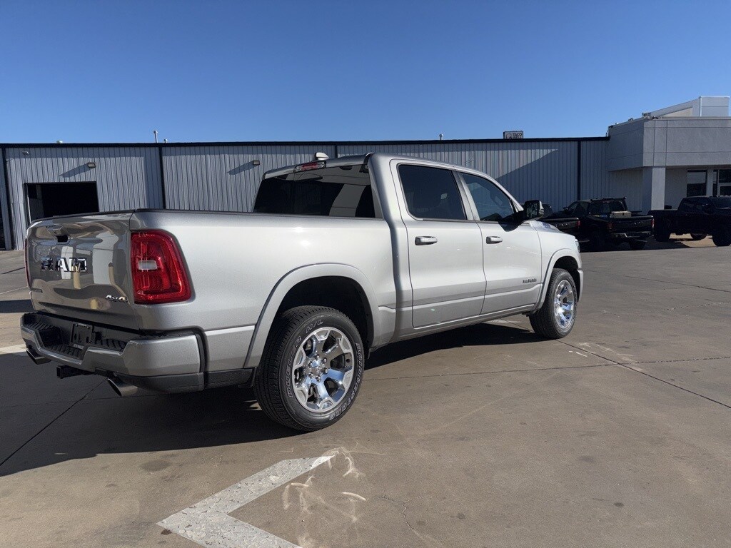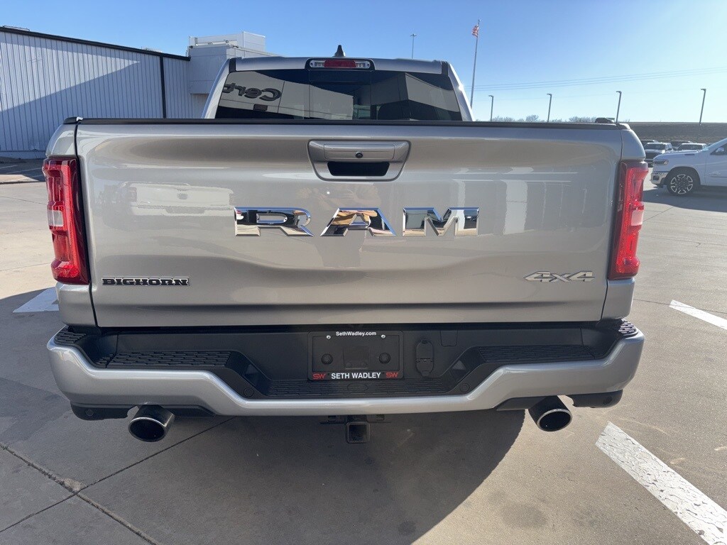 2025 Billet Silver Metallic Clearcoat Ram 1500 Big Horn/Lone Star 4WD 8-Speed Automatic 3.0L I6 This Ram 1500 has many features and is well equipped including, Lifetime Engine Guarantee, Lifetime Oil Changes, 115V Auxiliary Power Outlet, 115V Auxiliary Rear Power Outlet, 12" Touchscreen Display, 2nd Row In Floor Storage Bins, 3 Rear Seat Head Restraints, 4 Way Front Headrests, 4-Wheel Disc Brakes, 400W Inverter, 4G LTE Wi-Fi Hot Spot, 6 Speakers, 9 Amplified Speakers w/Subwoofer, ABS brakes, Air Conditioning, Air Conditioning ATC w/Dual Zone Control, Alloy wheels, AM/FM radio, Anti-Spin Differential Rear Axle, Apple CarPlay, Apple CarPlay/Android Auto, Auto High-beam Headlights, Auto Power-Folding Mirrors, Auto-Dimming Exterior Driver Mirror, Auto-Dimming Rear-View Mirror, Big Horn Level 2 Equipment Group, Black Exterior Mirrors, Black Interior Accents, Black Premium Power Mirrors, Body Color Door Handles, Body Color Front Bumper, Body Color Rear Bumper w/Step Pads, Body Color Tailgate Handle, Brake assist, Bucket Seats, Bumpers: chrome, Cloth Bench Seat, Cluster 7.0" TFT Color Display, Compass, Configurable Drive Mode, Connected Travel & Traffic Services, Connectivity - US/Canada, Convex Wide-Angle Exterior Mirror Insert, Delay-off headlights, Deluxe Cloth Bucket Seats, Driver door bin, Dual front impact airbags, Dual front side impact airbags, Electronic Stability Control, Exterior Mirrors Courtesy Lamps, Exterior Mirrors w/Heating Element, Exterior Mirrors w/Supplemental Signals, Front anti-roll bar, Front Center Armrest w/Storage, Front fog lights, Front reading lights, Front Seat Back Map Pockets, Front wheel independent suspension, Full Length Floor Console, Fully automatic headlights, Glove Box Lamp, Google Android Auto, GPS Antenna Input, GPS Navigation, Grille Surround 1 Body Color Texture 1 Black, HD Radio, Heated door mirrors, Heated Front Seats, Heated Steering Wheel, Illuminated entry, Integrated Voice Command w/Bluetooth, Leather Wrapped Steering Wheel, LED Dome Lamp w/On/Off Switch, LED Footwell Lighting, Low tire pressure warning, Manual Adjust 4-Way Front Passenger Seat, Manual Folding Exterior Mirrors, Media Hub w/2 Charge Only USBs, MOPAR Front & Rear Rubber Floor Mats, Occupant sensing airbag, Outside temperature display, Overhead airbag, Overhead console, Overhead LED Lamps, Panic alarm, ParkView Rear Back-Up Camera, Passenger door bin, Passenger vanity mirror, Power 2-Way Driver Lumbar Adjust, Power Adjust 8-Way Driver Seat, Power Adjustable Pedals, Power door mirrors, Power steering, Power windows, Premium Overhead Console, Quick Order Package 21Z Big Horn, Radio data system, Radio: Uconnect 5 Nav w/12.0" Display, Radio: Uconnect 5 W w/8.4" Display, RAM Grille Badge - Chrome, Rear 60/40 Folding Seat, Rear anti-roll bar, Rear Center Armrest, Rear Power Sliding Window, Rear seat center armrest, Rear step bumper, Rear Window Defroster, Remote keyless entry, Remote Tailgate Release, Security Alarm, SiriusXM w/360L, Speed control, Split folding rear seat, Sport Appearance Package, Steering Wheel Mounted Audio Controls, Sun Visors w/Illuminated Vanity Mirrors, Supplier Part Tracking (J-1), Tachometer, Telescoping steering wheel, Tilt steering wheel, Traction control, Trip computer, Universal Garage Door Opener, USB Host Flip, Variably intermittent wipers, Voltmeter, Wheels: 18" x 8" Cast-Aluminum Painted, Wheels: 20" x 9" Aluminum Chrome Clad (WRK).