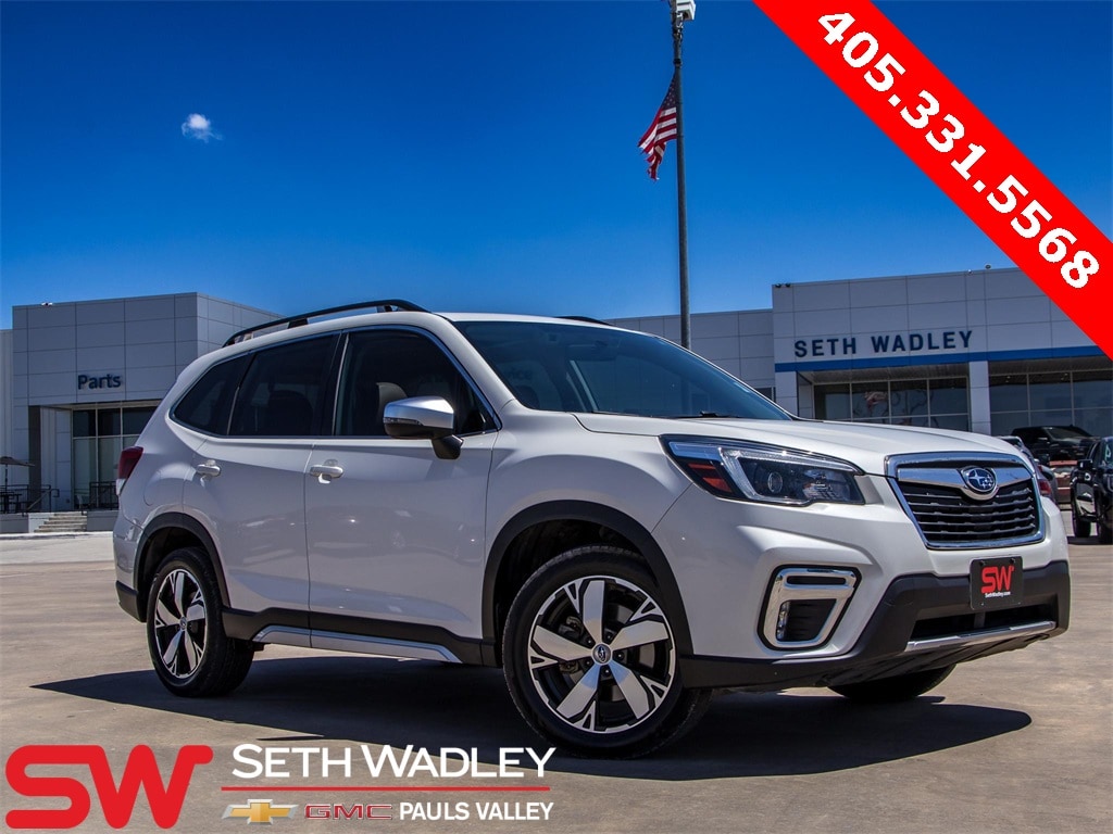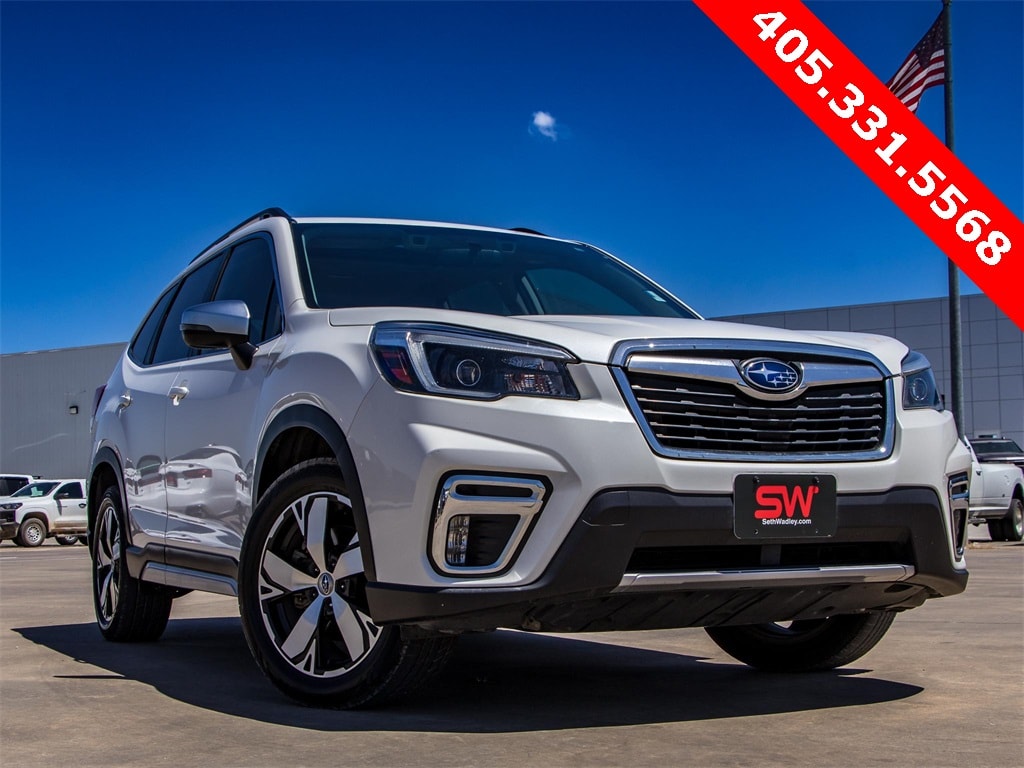 2021 Crystal White Pearl Subaru Forester Touring AWD Lineartronic CVT 2.5L 4-Cylinder DOHC 16V VVT This Subaru Forester has many features and is well equipped including, Lifetime Engine Guarantee, Lifetime Oil Changes, Accident Free Carfax, Bluetooth, Carfax One-Owner, Keyless Entry, Leather, Navigation / GPS, Power Sunroof / Moonroof, Rear Backup Camera, **SIRIUS/XM SATELLITE RADIO**, All Wheel Drive / 4x4, USB, Bluetooth Hands Free, 3.70 Axle Ratio, 4-Wheel Disc Brakes, 9 Speakers, ABS brakes, Air Conditioning, Alloy wheels, AM/FM radio: SiriusXM, Auto High-beam Headlights, Automatic temperature control, Brake assist, Bumpers: body-color, CD player, Driver door bin, Driver vanity mirror, Dual front impact airbags, Dual front side impact airbags, Electronic Stability Control, Emergency communication system: STARLINK Safety and Security (Subscription Required), Exterior Parking Camera Rear, Four wheel independent suspension, Front anti-roll bar, Front Bucket Seats, Front Center Armrest, Front dual zone A/C, Front fog lights, Front reading lights, Fully automatic headlights, harman kardon 576W Amp & Speaker System, harman/kardon® Speakers, Heated door mirrors, Heated Front Bucket Seats, Heated front seats, Heated rear seats, Heated steering wheel, HVAC memory, Illuminated entry, Knee airbag, Leather Shift Knob, Low tire pressure warning, Memory seat, Navigation System, Occupant sensing airbag, Outside temperature display, Overhead airbag, Overhead console, Paddle-Shift Control Switches, Panic alarm, Passenger door bin, Passenger vanity mirror, Perforated Leather-Trimmed Upholstery, Power door mirrors, Power driver seat, Power Liftgate, Power moonroof: Panoramic, Power passenger seat, Power steering, Power windows, Premium audio system: harman/kardon, Radio data system, Radio: Subaru Starlink 8.0" Multimedia Nav System, Rear anti-roll bar, Rear seat center armrest, Rear window defroster, Rear window wiper, Remote keyless entry, Roof rack: rails only, Security system, Speed control, Speed-sensing steering, Split folding rear seat, Spoiler, Standard Model, STARLINK/Apple CarPlay/Android Auto, Steering wheel mounted audio controls, Tachometer, Telescoping steering wheel, Tilt steering wheel, Traction control, Trip computer, Turn signal indicator mirrors, Variably intermittent wipers, Wheels: 18" x 7.0J Blk Machine Touring Alum Alloy.