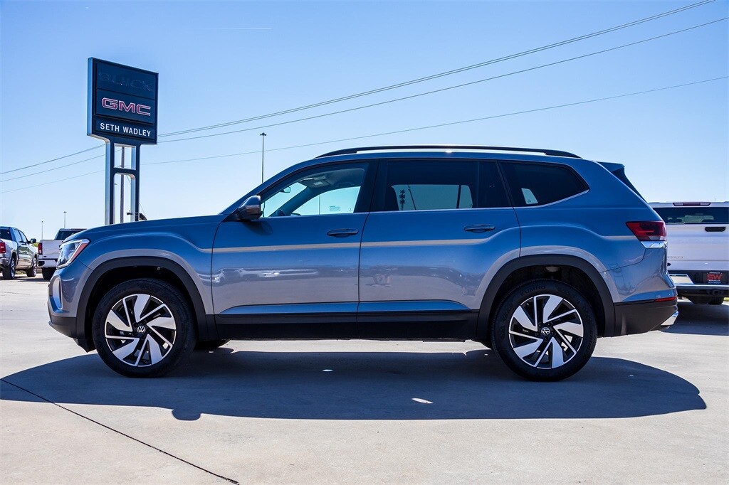 Certified. 2025 Silver Mist Metallic Volkswagen Atlas 2.0T SE w/Technology AWD 8-Speed Automatic with Tiptronic 2.0L TSI This Volkswagen Atlas has many features and is well equipped including, Lifetime Engine Guarantee, Lifetime Oil Changes, Accident Free Carfax, Bluetooth, Carfax One-Owner, Heated / Cooled Seats, Keyless Entry, Rear Backup Camera, **SIRIUS/XM SATELLITE RADIO**, USB, Bluetooth Hands Free, 3rd row seats: split-bench, 4-Wheel Disc Brakes, 6 Speakers, ABS brakes, Air Conditioning, Alloy wheels, AM/FM radio: SiriusXM with 360L, Auto High-beam Headlights, Auto-dimming Rear-View mirror, Automatic temperature control, Brake assist, Bumpers: body-color, Compass, Delay-off headlights, Driver door bin, Driver vanity mirror, Dual front impact airbags, Dual front side impact airbags, Electronic Stability Control, Emergency communication system: VW Car-Net Safe & Secure 5-year, Exterior Parking Camera Rear, Four wheel independent suspension, Four-wheel Independent Suspension, Front anti-roll bar, Front Bucket Seats, Front Center Armrest, Front dual zone A/C, Front fog lights, Front reading lights, Fully automatic headlights, Heated & Actively Ventilated Front Bucket Seats, Heated door mirrors, Heated front seats, Heated steering wheel, Illuminated entry, Low tire pressure warning, Occupant sensing airbag, Outside temperature display, Overhead airbag, Overhead console, Panic alarm, Passenger door bin, Passenger vanity mirror, Perforated V-Tex Leatherette Seating Surfaces, Power door mirrors, Power driver seat, Power Liftgate, Power steering, Power windows, Radio data system, Radio: MIB3 Composition Media, Rain sensing wipers, Rear air conditioning, Rear anti-roll bar, Rear reading lights, Rear seat center armrest, Rear window defroster, Rear window wiper, Remote keyless entry, Security system, Speed control, Speed-sensing steering, Split folding rear seat, Spoiler, Steering wheel mounted audio controls, Tachometer, Telescoping steering wheel, Tilt steering wheel, Traction control, Trip computer, Turn signal indicator mirrors, Variably intermittent wipers, Ventilated front seats, Wheels: 20" 2-Tone Machined Alloy.