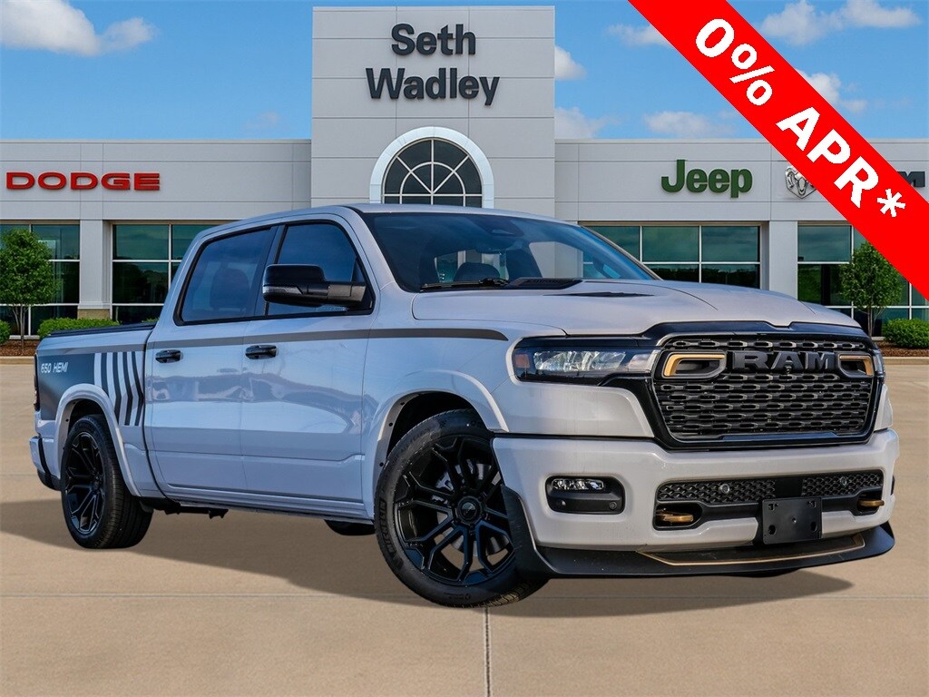 This Ram 1500 has many features and is well equipped including, Lifetime Engine Guarantee, Lifetime Oil Changes, 115V Auxiliary Power Outlet, 115V Auxiliary Rear Power Outlet, 12" Touchscreen Display, 2nd Row in Floor Storage Bins, 3 Rear Seat Head Restraints, 33 Gallon Fuel Tank, 4 Way Front Headrests, 4-Wheel Disc Brakes, 400W Inverter, 48V Belt Starter Generator, 4G LTE Wi-Fi Hot Spot, 6 Speakers, 9 Amplified Speakers with Subwoofer, ABS brakes, Accent Color Door Handles, Accent Color Premium Power Mirrors, Accent Color Tailgate Handle, Air Conditioning, Air Conditioning ATC with Dual Zone Control, Alloy wheels, AM/FM radio, Anti-Spin Differential Rear Axle, Apple CarPlay, Apple CarPlay/Android Auto, Auto High-beam Headlights, Auto Power-Folding Mirrors, Auto-Dimming Exterior Driver Mirror, Auto-Dimming Rear-View Mirror, Bed Utility Group, Big Horn Level 2 Equipment Group, Black Exterior Mirrors, Black Exterior Truck Badging, Black Headlamp Bezels, Black Interior Accents, Black Painted Exterior Mirrors Caps, Black Premium Power Mirrors, Black Tail Lamp Bezels, Body Color Fender Flares, Body Color Front Bumper, Body Color Rear Bumper with Step Pads, Brake assist, Bucket Seats, Bumpers: chrome, Center Console Parts Module, Cloth Bucket Seats, Cluster 12" TFT Color Display, Cluster 7.0" TFT Color Display, Compass, Configurable Drive Mode, Connected Travel and Traffic Services, Connectivity - US/Canada, Convex Wide-Angle Exterior Mirror Insert, Delay-off headlights, Deluxe Cloth Bucket Seats, Disassociated Touchscreen Display, Dome Dual LED Reading Lamp, Driver door bin, Dual Exhaust with Black Tips, Dual front impact airbags, Dual front side impact airbags, Dual-Pane Panoramic Sunroof, Electronic Stability Control, Exterior 115V AC Outlet, Exterior Mirrors Courtesy Lamps, Exterior Mirrors with Heating Element, Exterior Mirrors with Supplemental Signals, Front anti-roll bar, Front Bucket Seats, Front Center Armrest w/Storage, Front fog lights, Front License Plate Bracket, Front reading lights, Front Seat Back Map Pockets, Front wheel independent suspension, Full Length Floor Console, Fully automatic headlights, Global Telematics Box Module, Glove Box Lamp, Google Android Auto, GPS Antenna Input, GPS Navigation, Grille Black Surround Black Mesh, HD Radio, Heated door mirrors, Heated Front Seats, Heated Steering Wheel, Illuminated entry, Integrated Center Stack Radio, Integrated Voice Command with Bluetooth, Leather Wrapped Steering Wheel, LED Dome Lamp with on/Off Switch, LED Footwell Lighting, Low tire pressure warning, Manual Adjust 4-Way Driver Seat, Manual Adjust 4-Way Front Passenger Seat, Manual Folding Exterior Mirrors, Manufacturer's Statement of Origin, Media Hub with 2 Charge Only USBs, MOPAR 4 Adjustable Cargo Tie-Down Hooks, MOPAR Spray in Bedliner, Night Edition, Occupant sensing airbag, Outside temperature display, Overhead airbag, Overhead console, Overhead LED Lamps, Panic alarm, ParkView Price does not include documentation fee. Price includes: $3500 - 2026 National Retail Consumer Cash . Exp. 03/31/2026 $750 - 2026 Southwest BC Retail Bonus Cash . Exp. 03/31/2026 Price includes dealer added